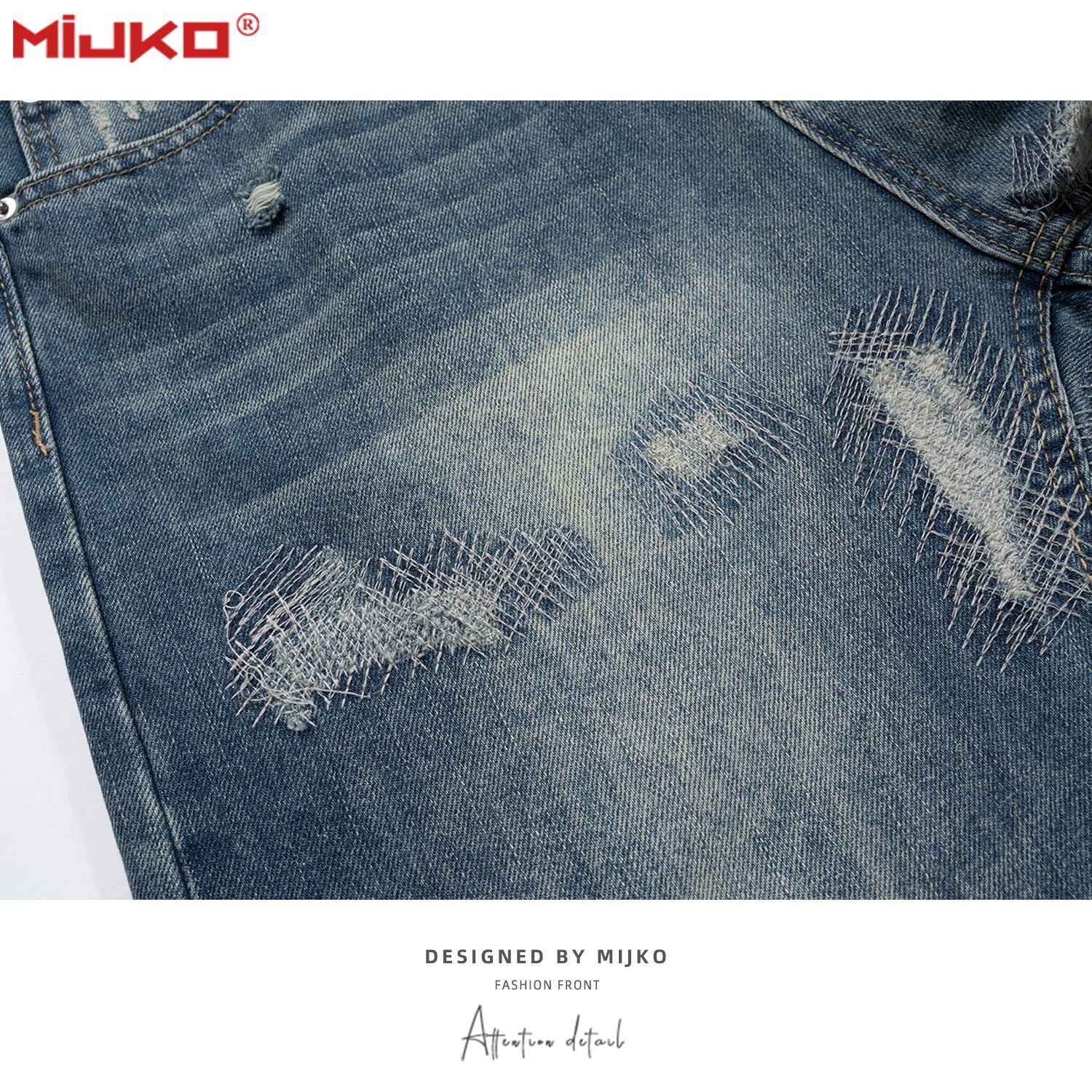 MIJKO Mens Vintage Pants Ragged Patch Unisex Jeans