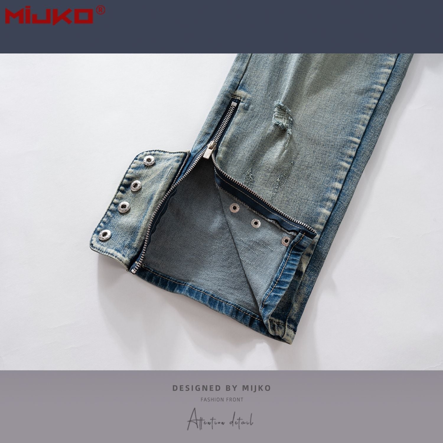 MIJKO Mens Vintage Pants Slim Fit Wash Old Ripped Blue Jeans