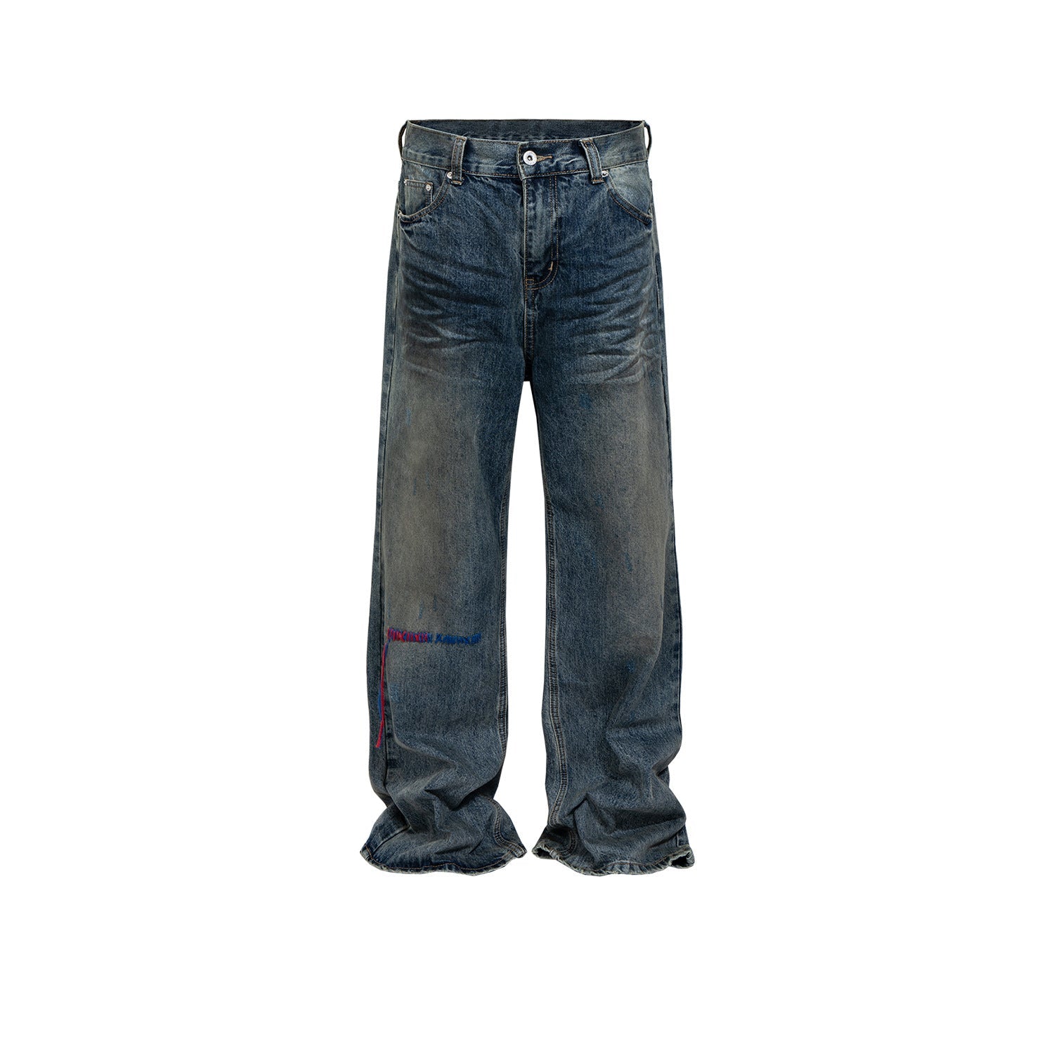 MIJKO Mens Vintage Pants Washed Water Old Embroidered Unisex Pants