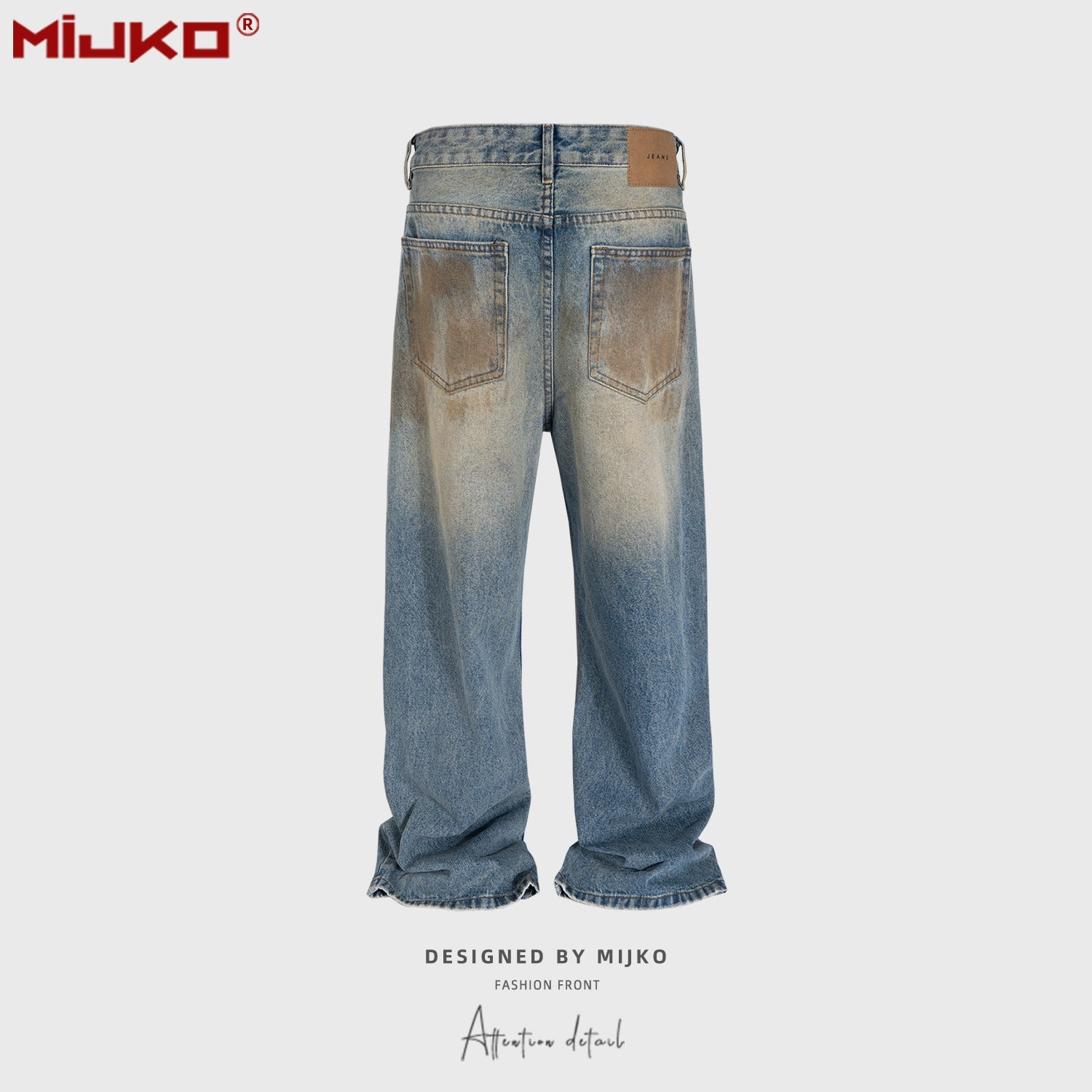 MIJKO Mens Vintage Pants Ripped Old Blue Jeans