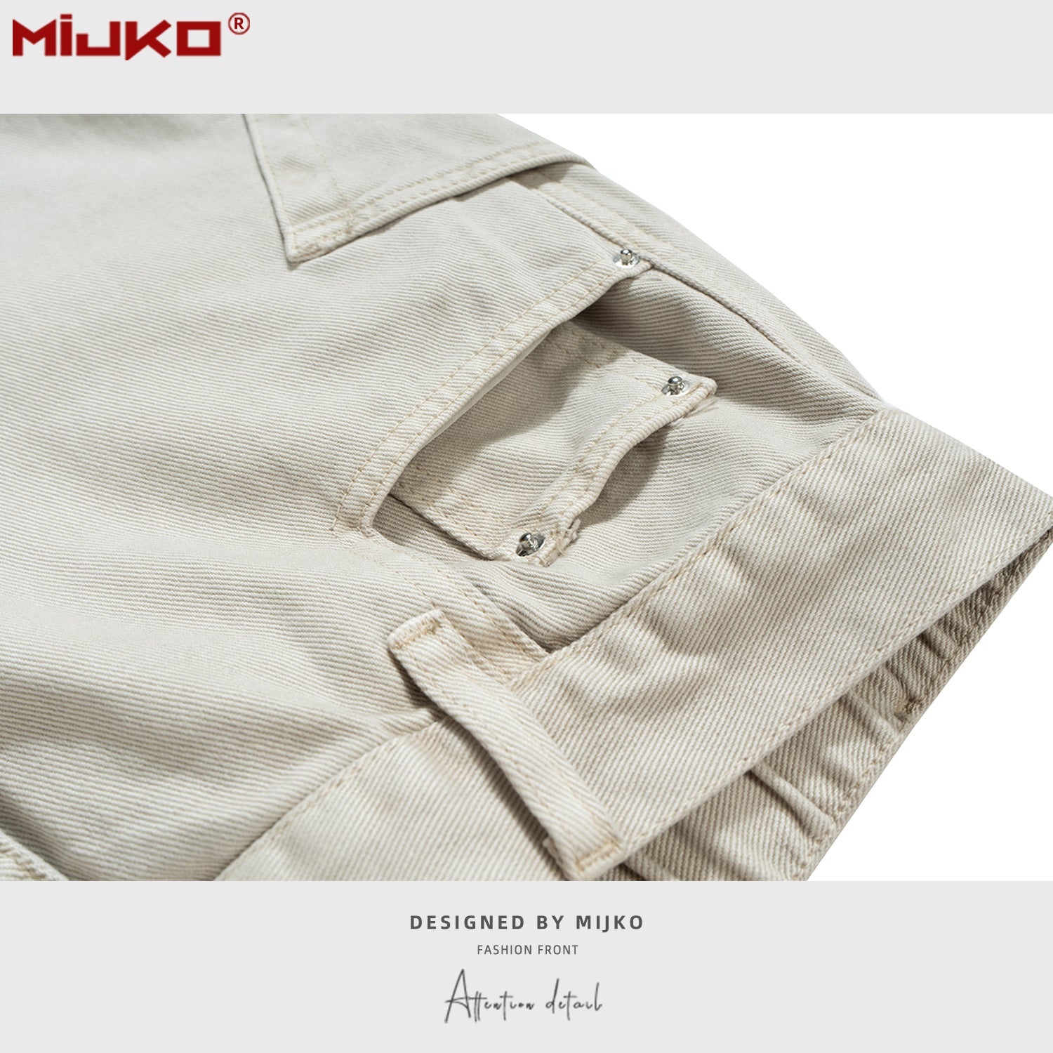 MIJKO Mens Vintage Pants Stretch Waist Straight Jeans