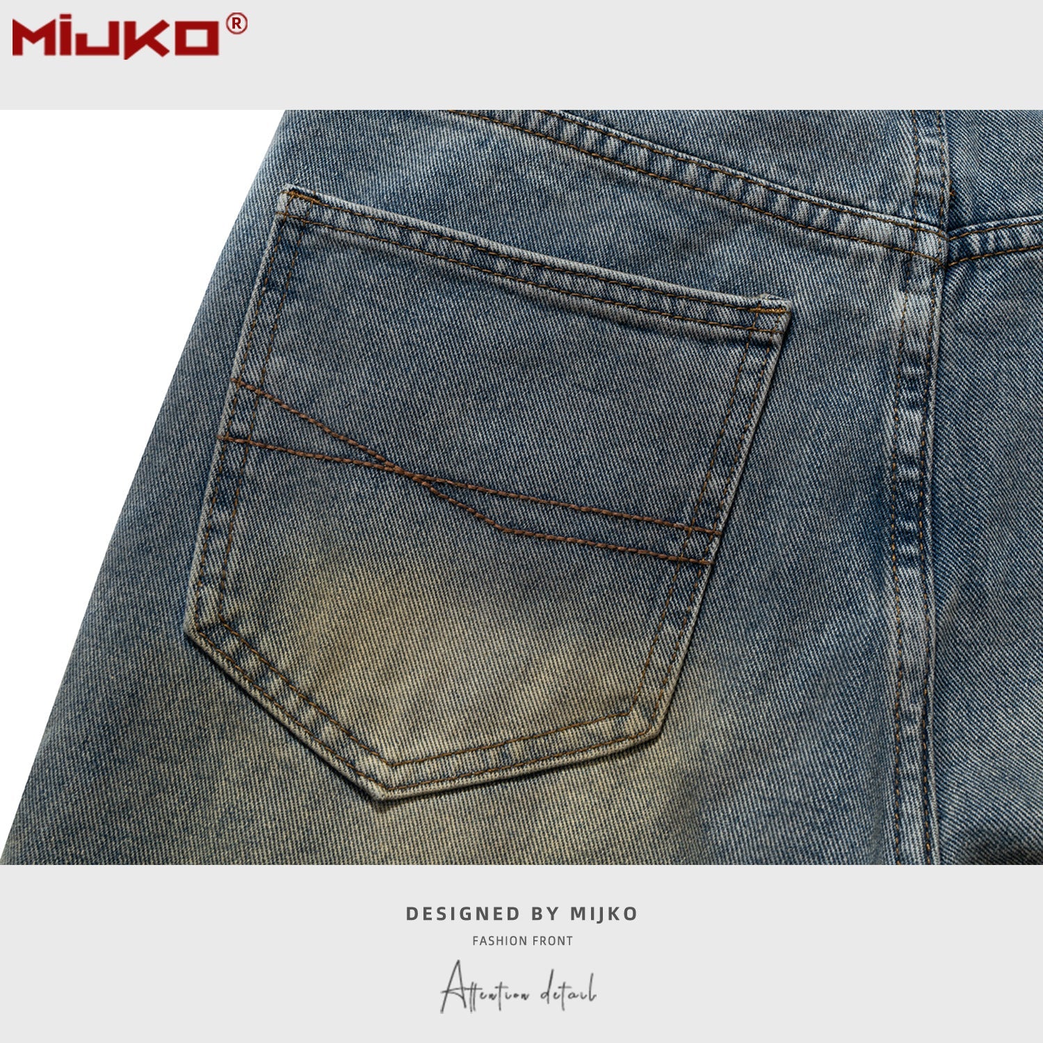 MIJKO Mens Vintage Pants Distress Wide Leg Jeans