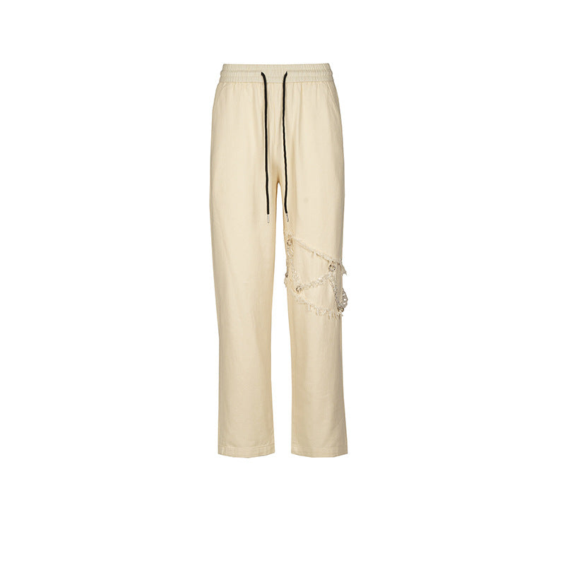 MIJKO Mens Vintage Pants Chain Embellished Drawstring Casual Bootcut Pants