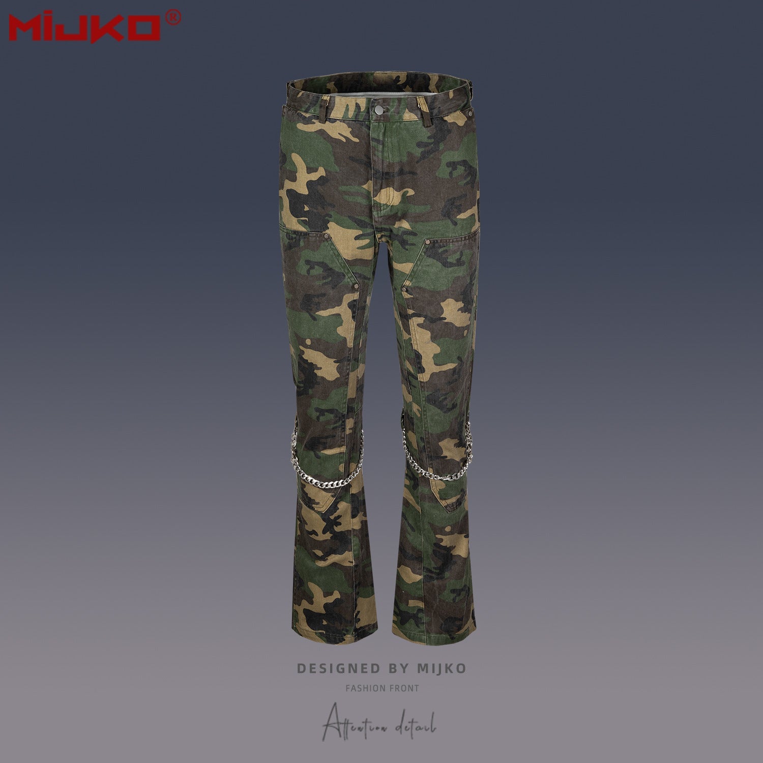 MIJKO Mens Vintage Pants Chain Decorative Casual Denim