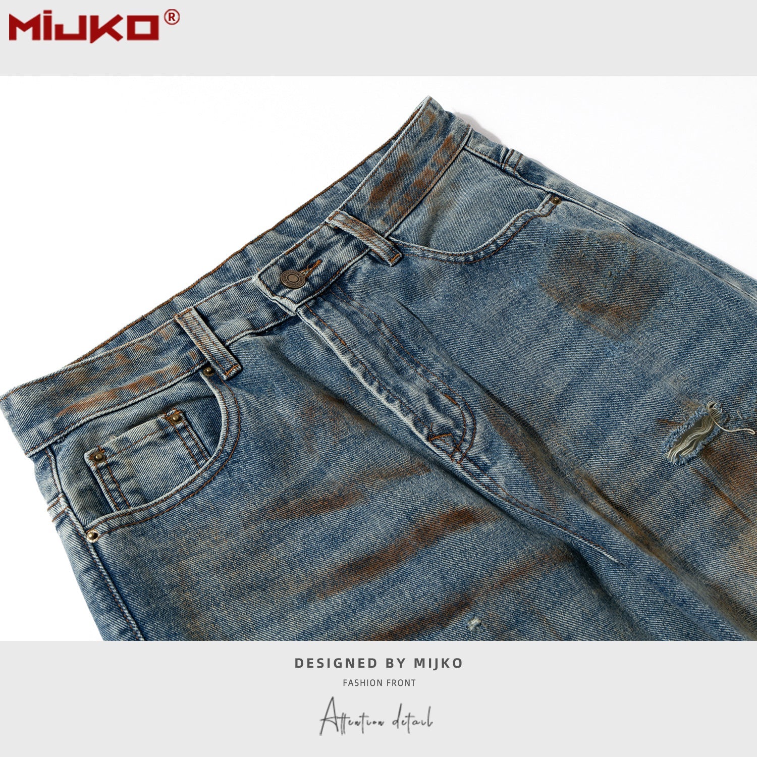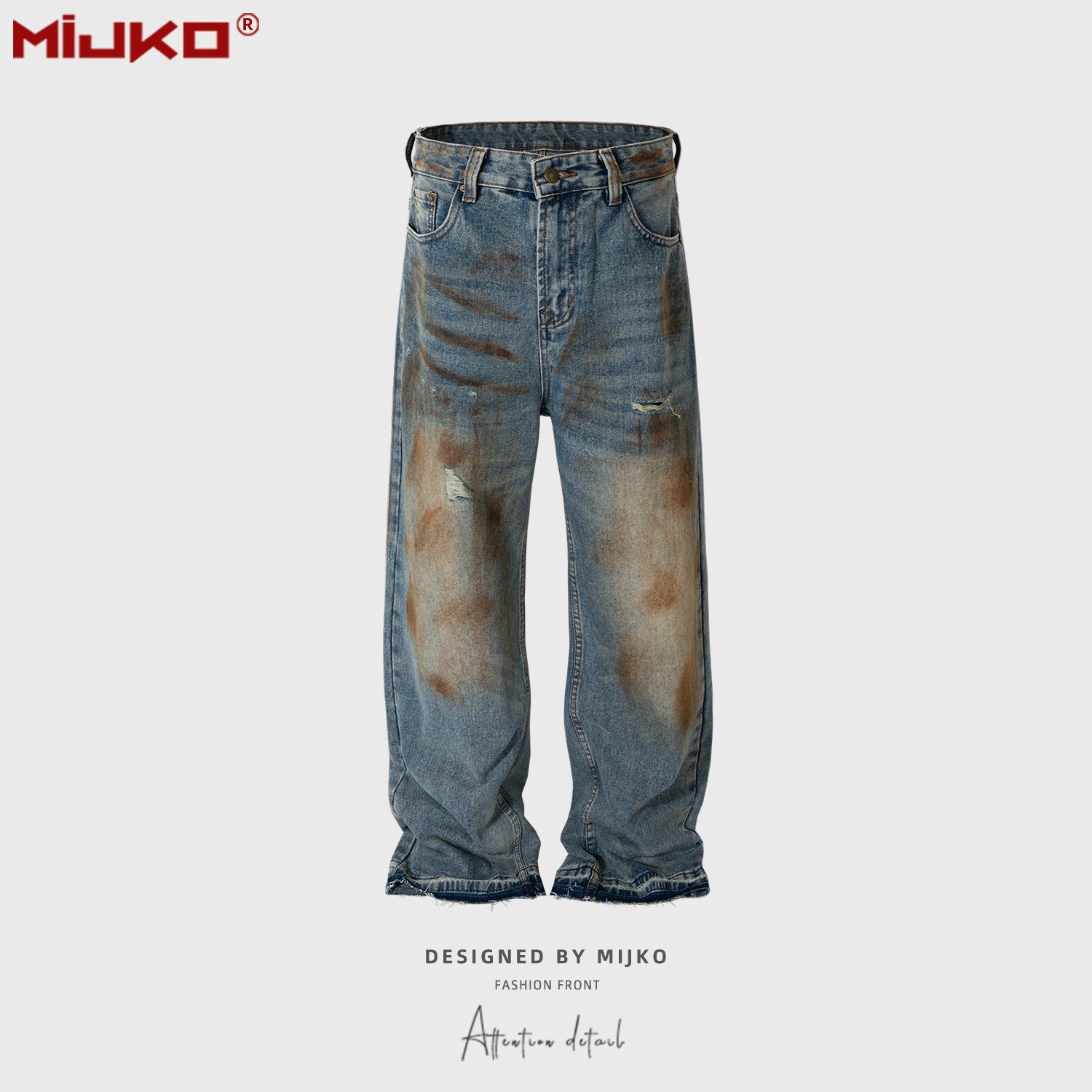 MIJKO Mens Vintage Pants Graffiti Jeans