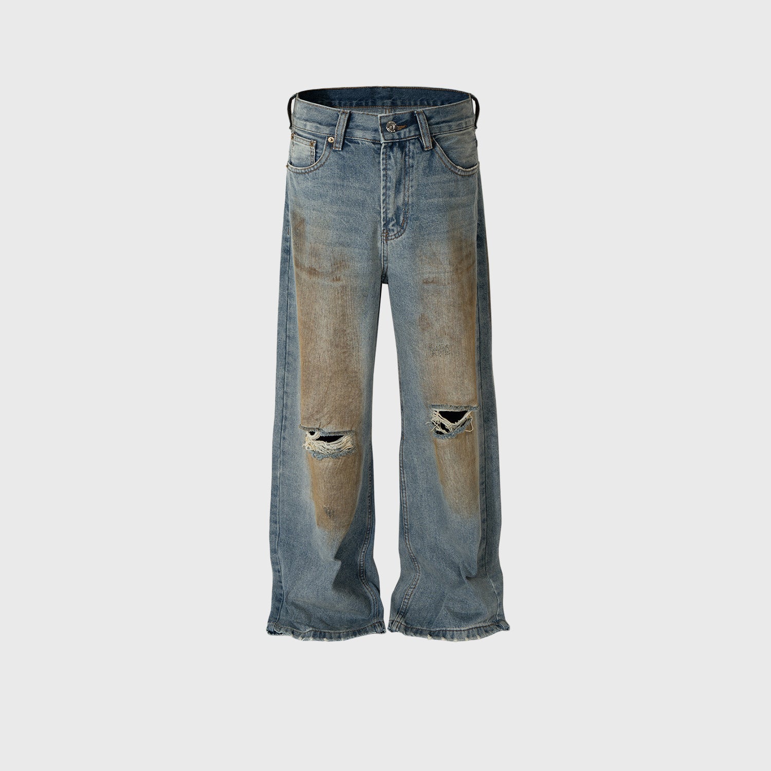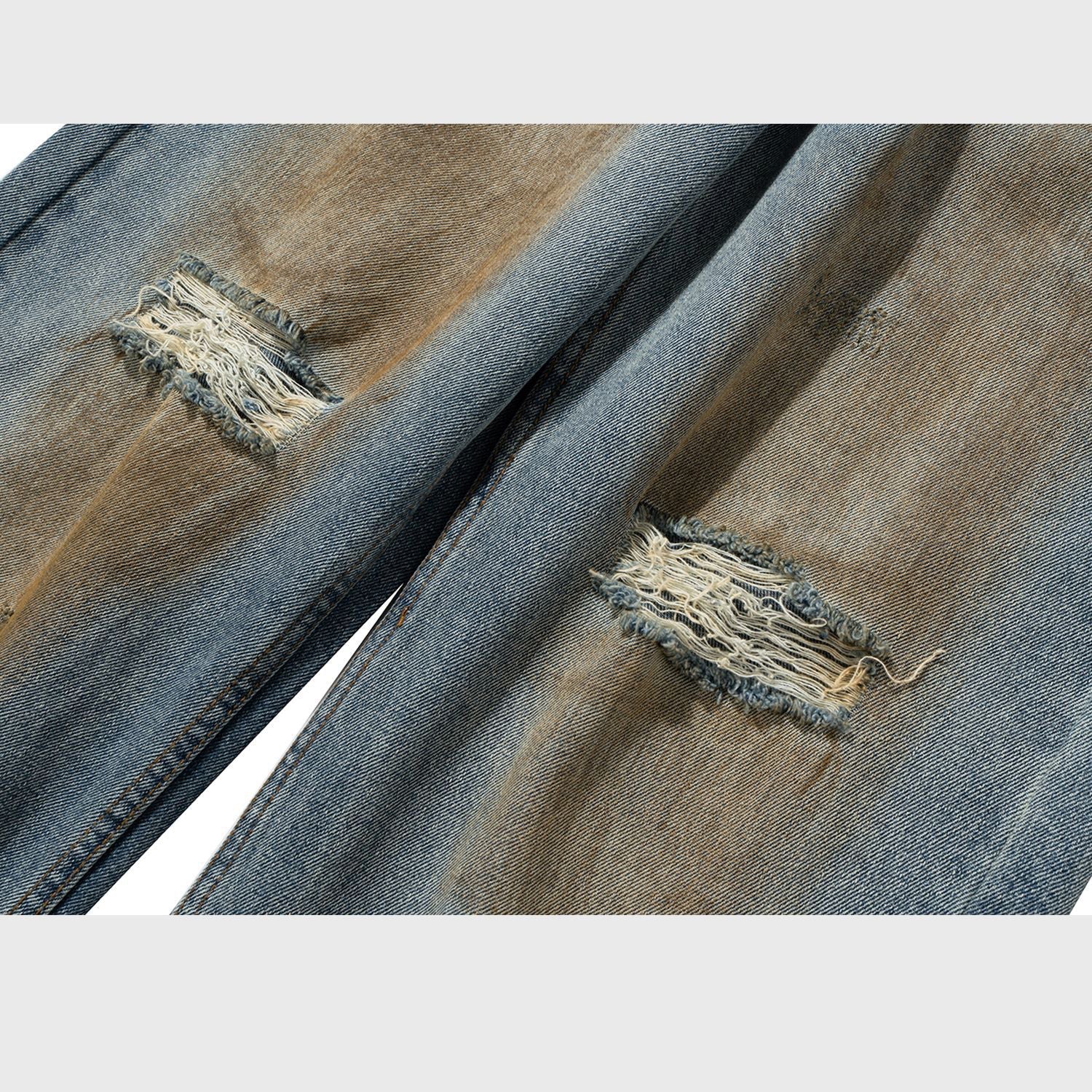 MIJKO Mens Vintage Pants Ripped Straight Old Jeans