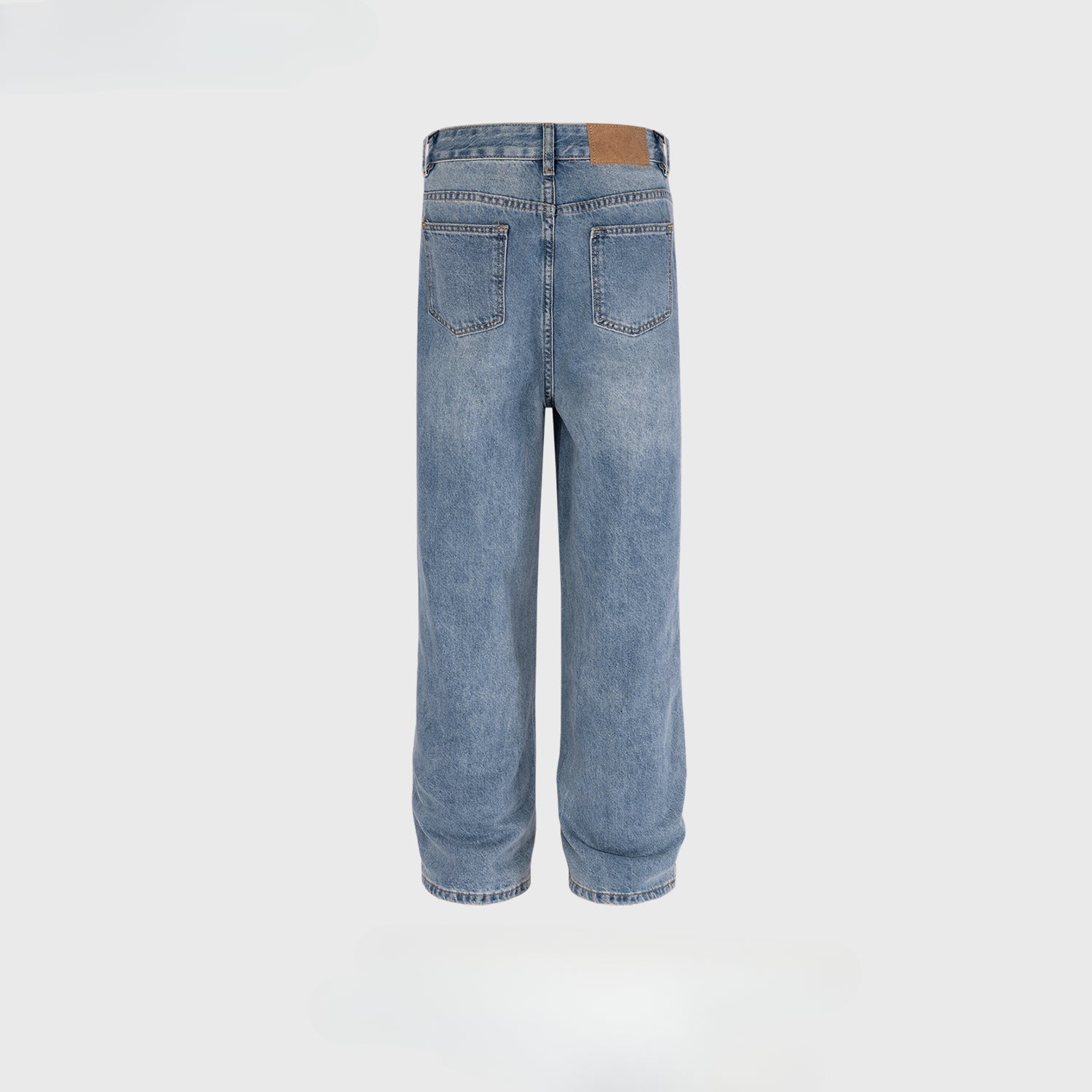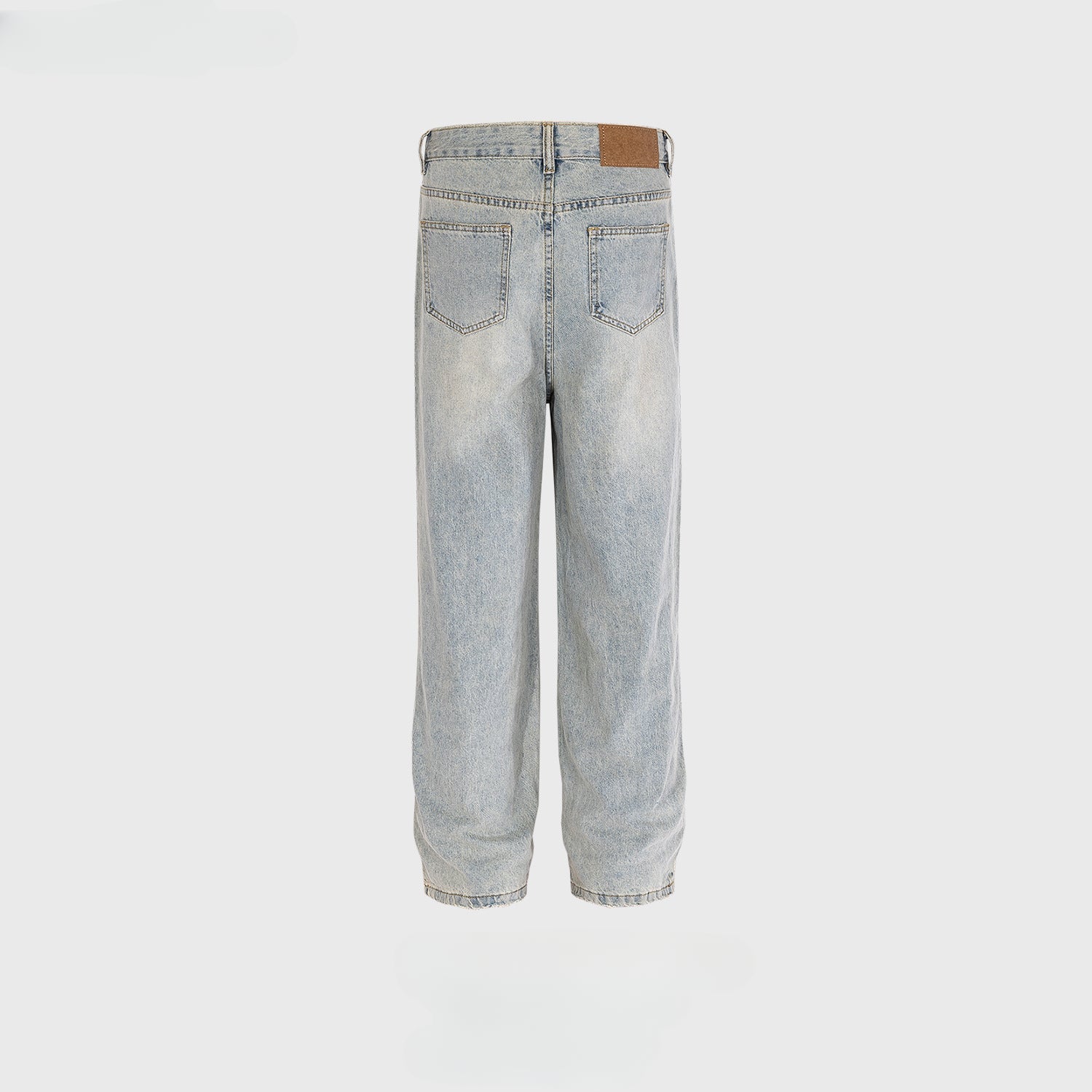 MIJKO Men Vintage Pants MIJKO splicing straight wash water to make old jeans