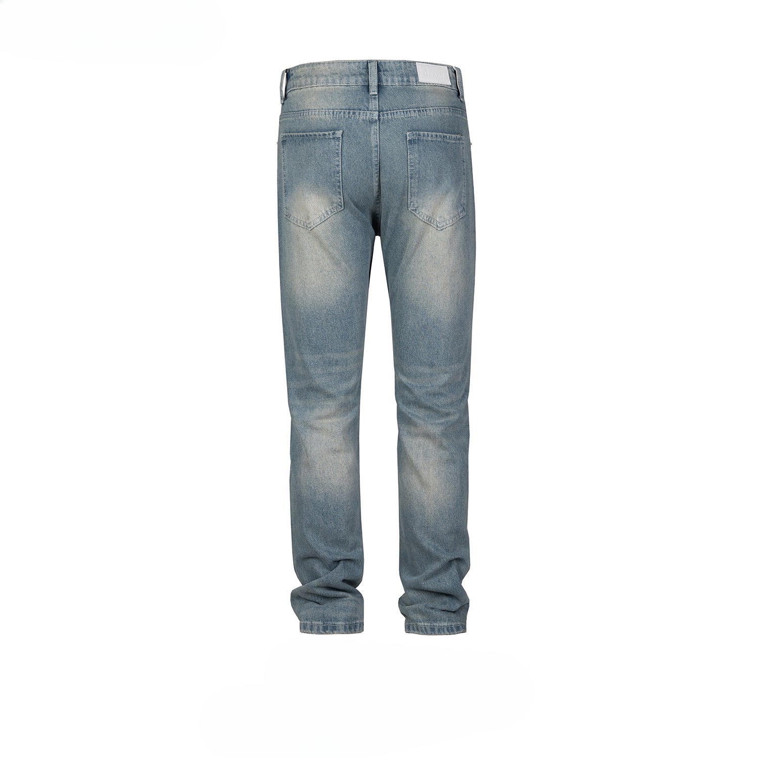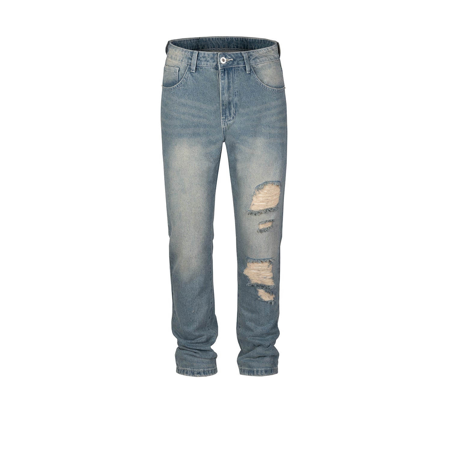 MIJKO Men's Vintage Pants MIJKO Washed Old Trousers Men's and Women's Ripped Slim-Fit Jeans