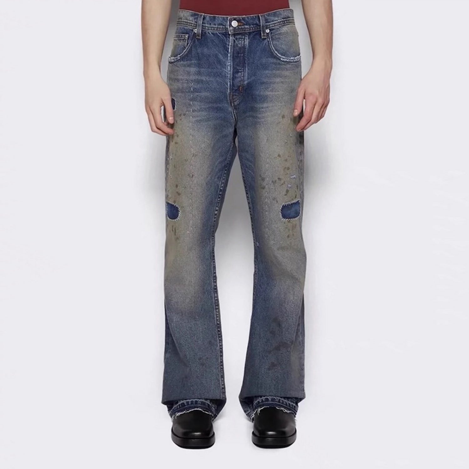 MIJKO Men Vintage Pants MIJKO old dirty wash trousers men and women slightly wide-footed jeans tide
