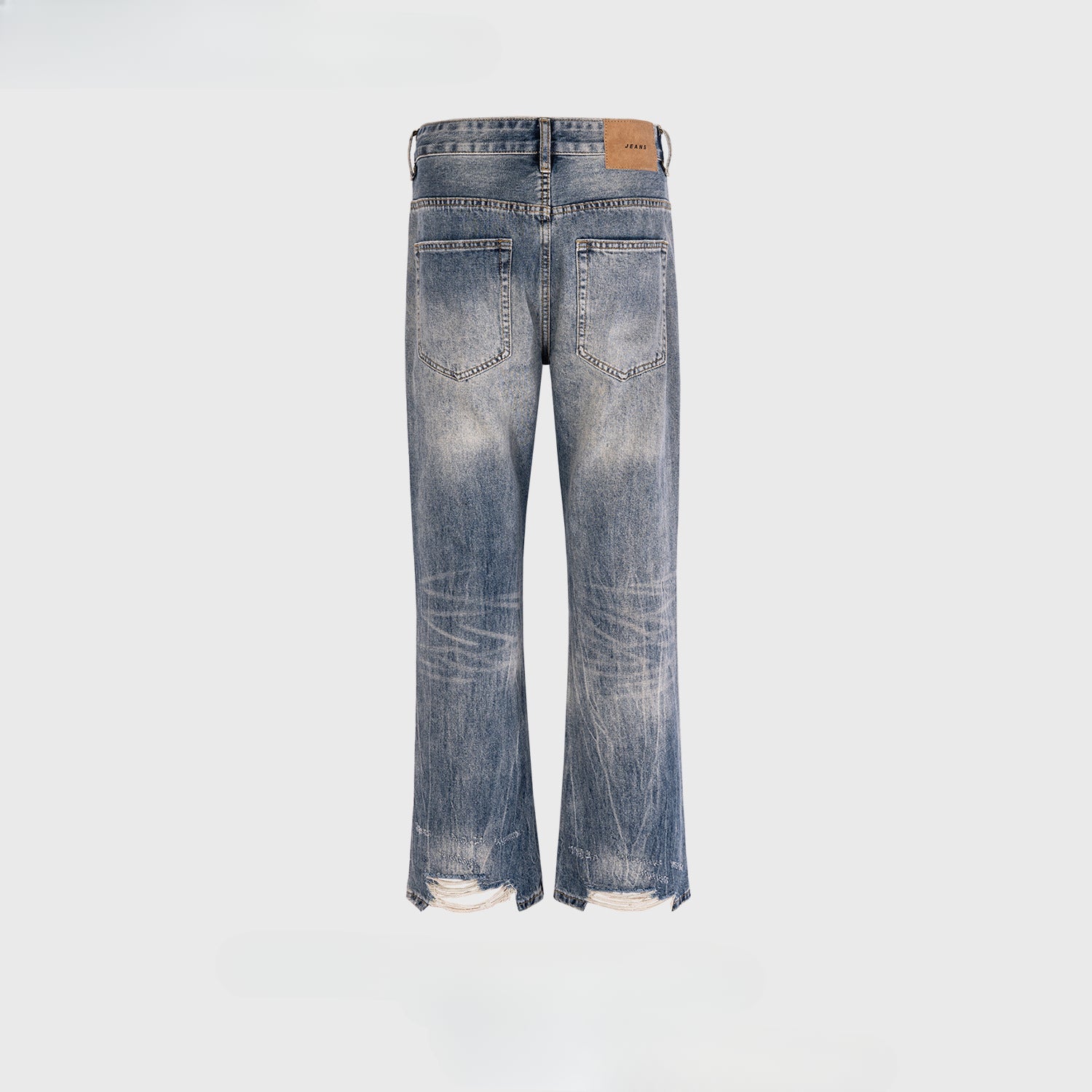 MIJKO Men's Vintage Pants MIJKO Men's and Women's Washing Water Grinding White Jeans Tide