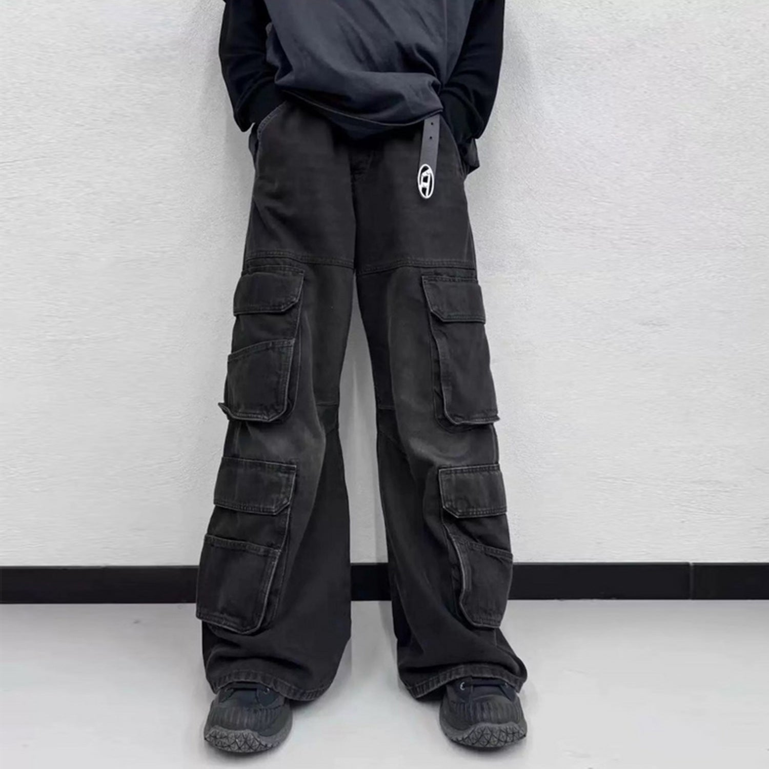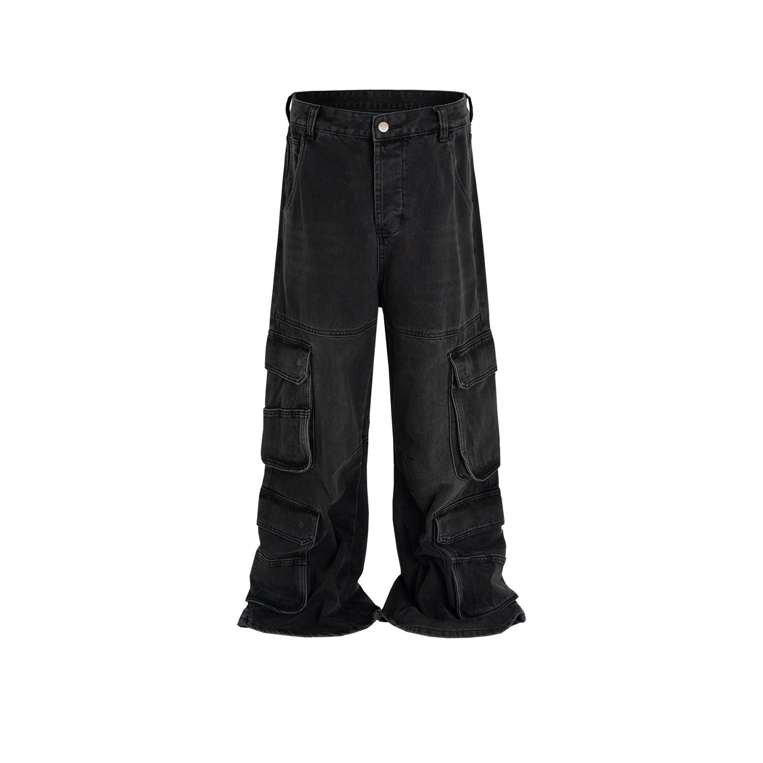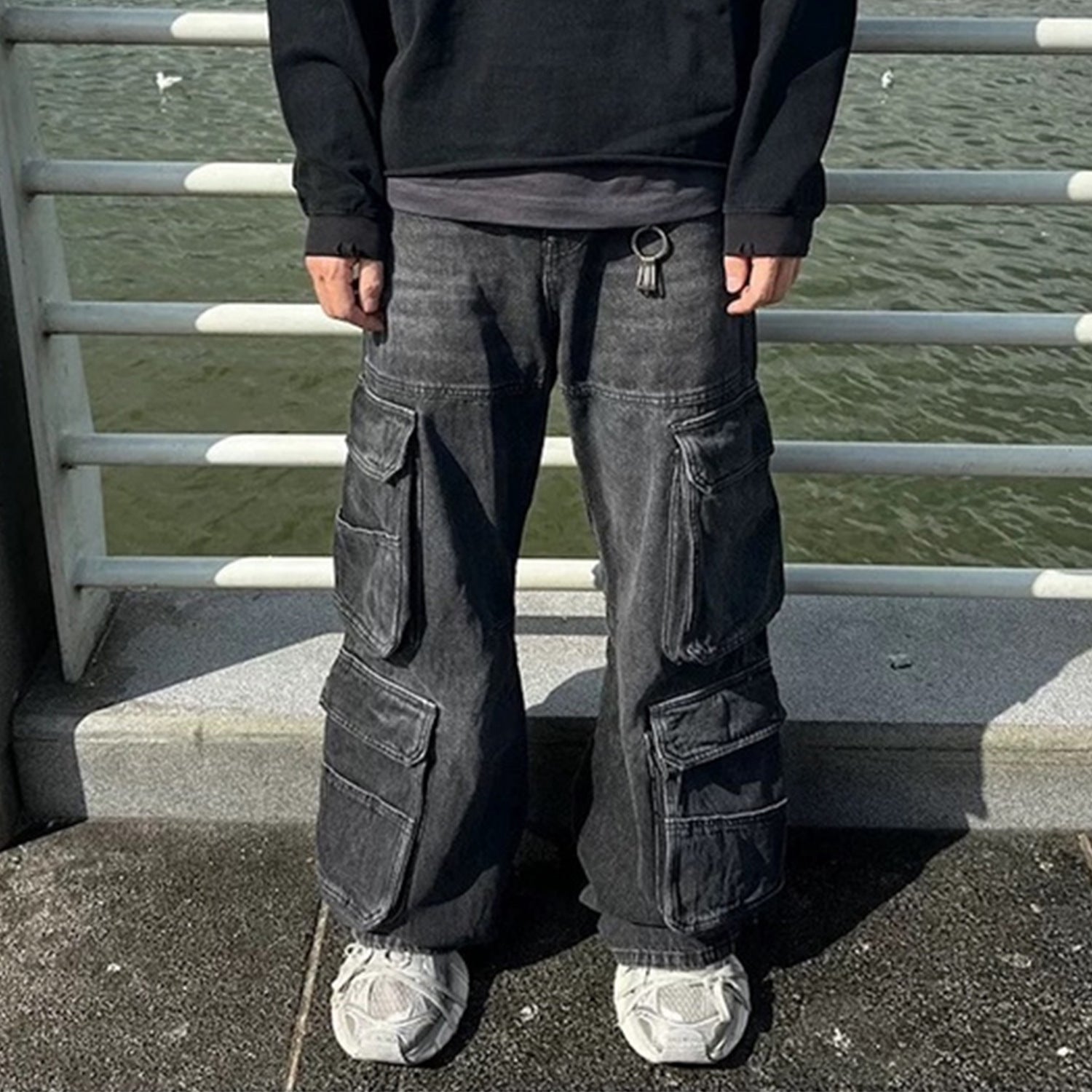 MIJKO Men's Vintage Pants MIJKO Men's Wide Leg Jeans Washed Black Trousers Tide