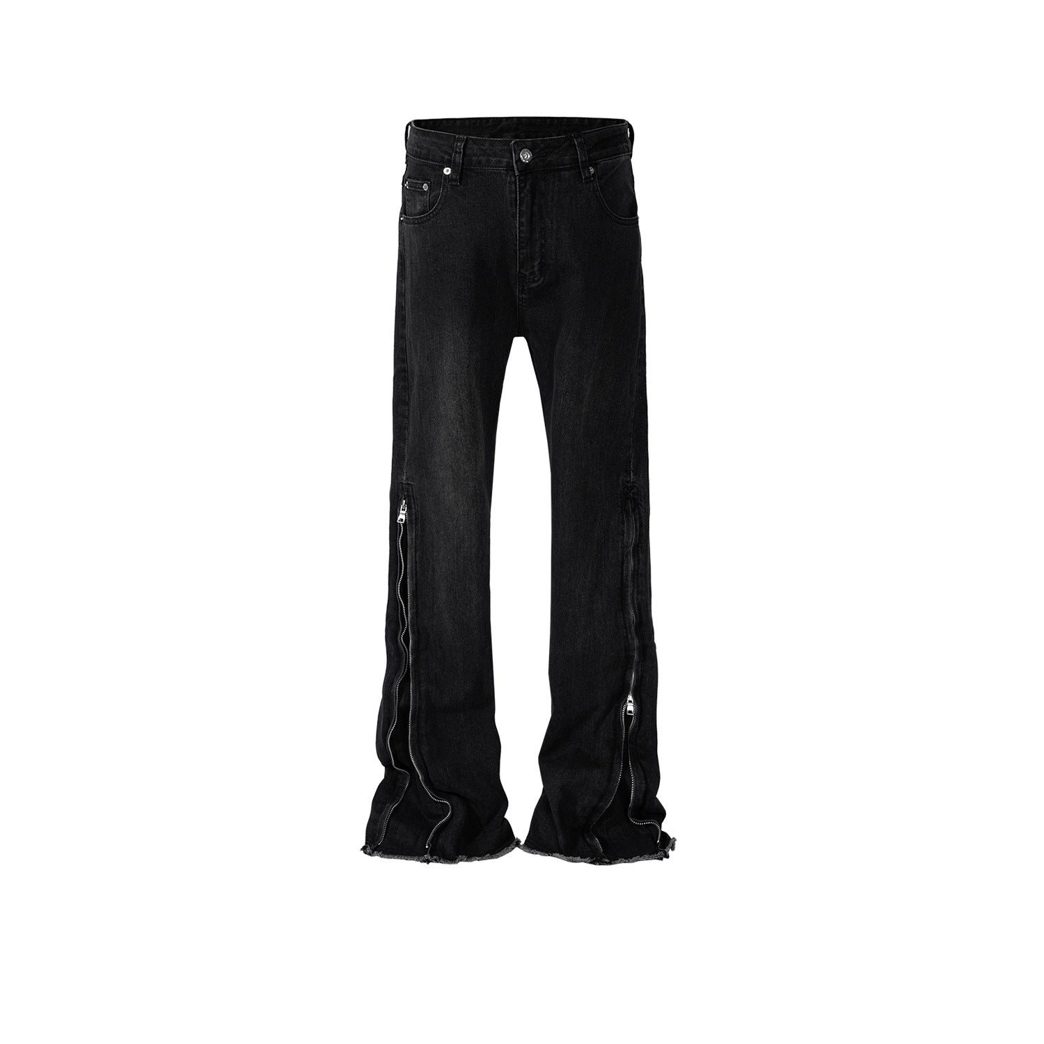 MIJKO Mens Vintage Pants MIJKO Design Trousers Zipper Wide Foot Jeans
