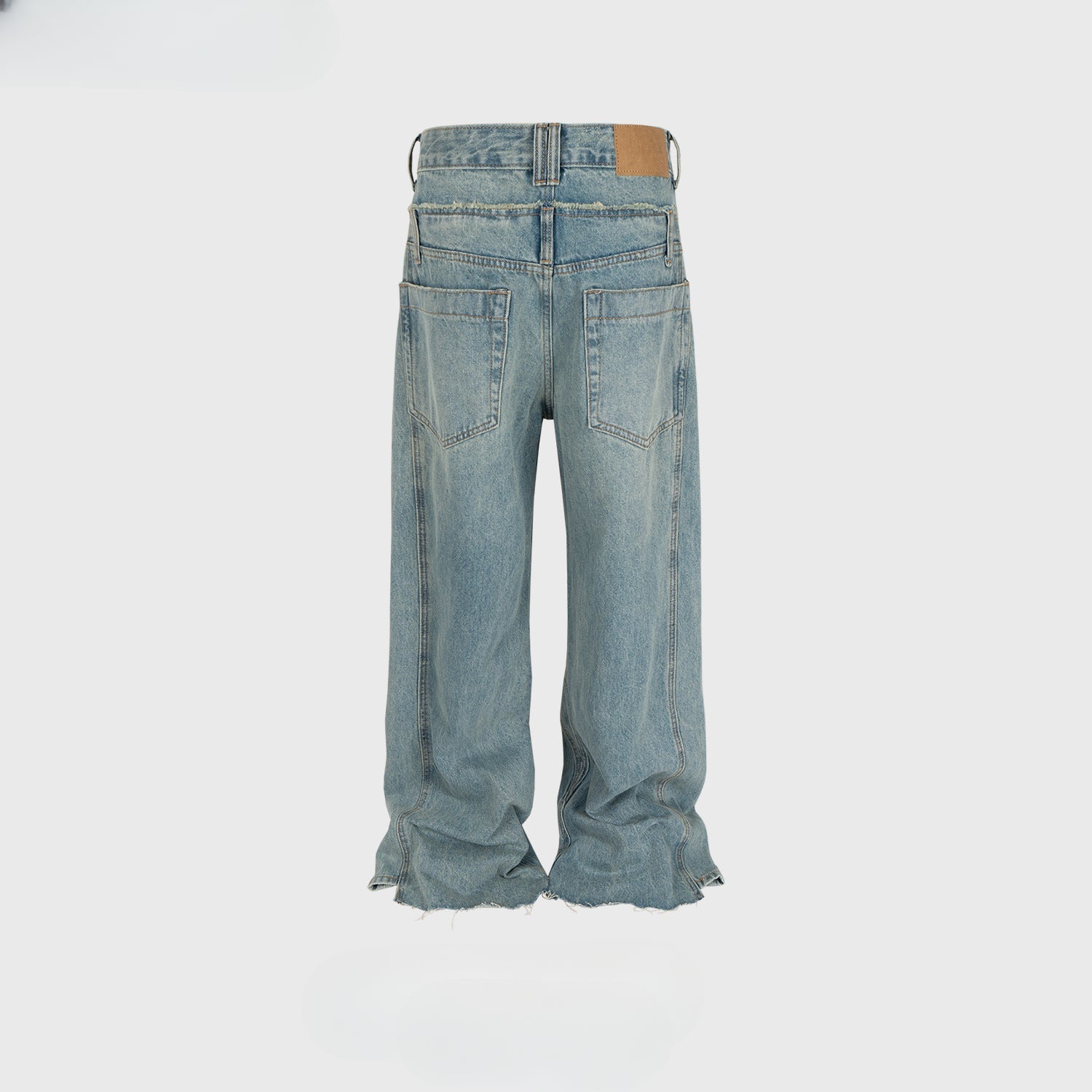 MIJKO Men's Vintage Pants MIJKO Splicing Design Men's and Women's Straight Jeans