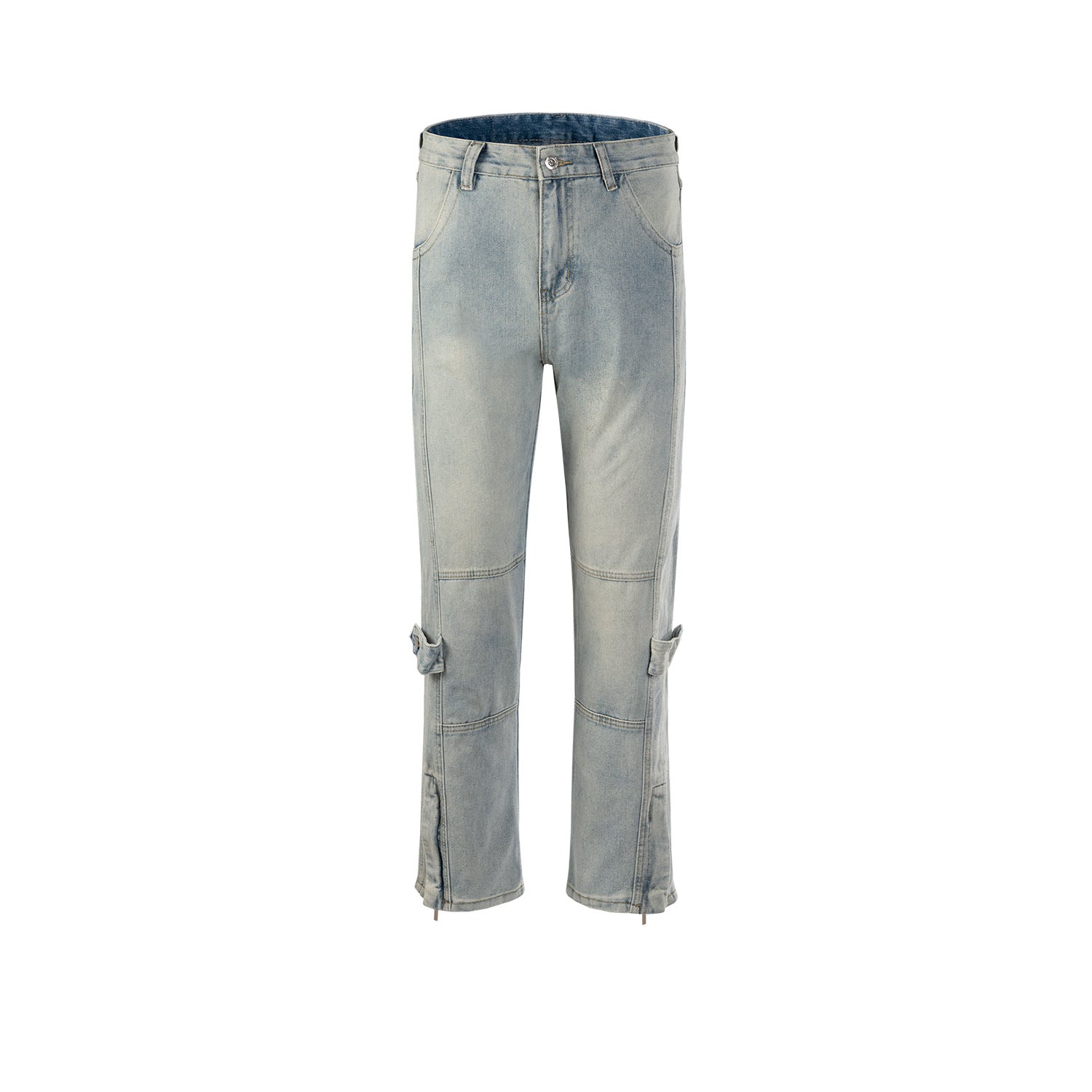 MIJKO Men's Vintage Pants MIJKO Men's Zipper Pants Pants Button Jeans