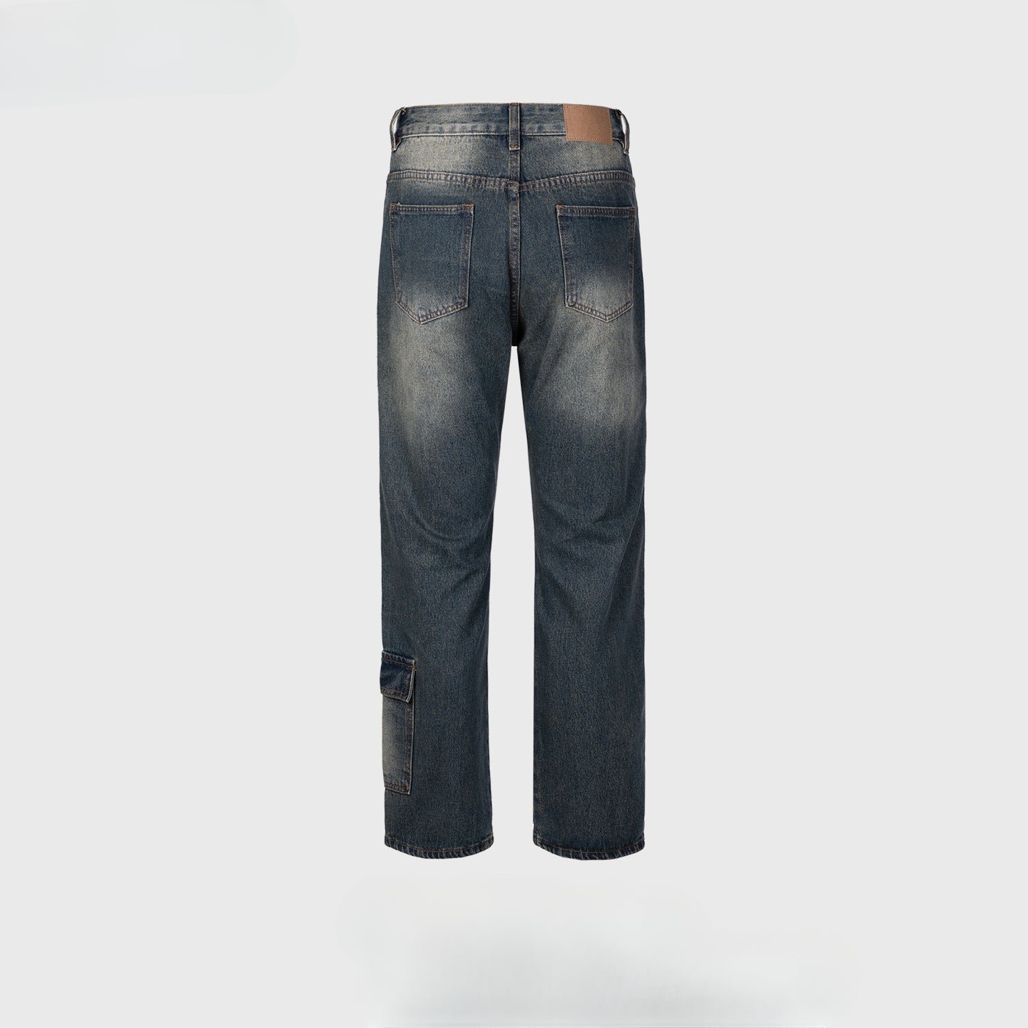 MIJKO Men's Vintage Pants MIJKO Splicing Pocket Trousers Men's and Women's Washed Water-Ground White Jeans