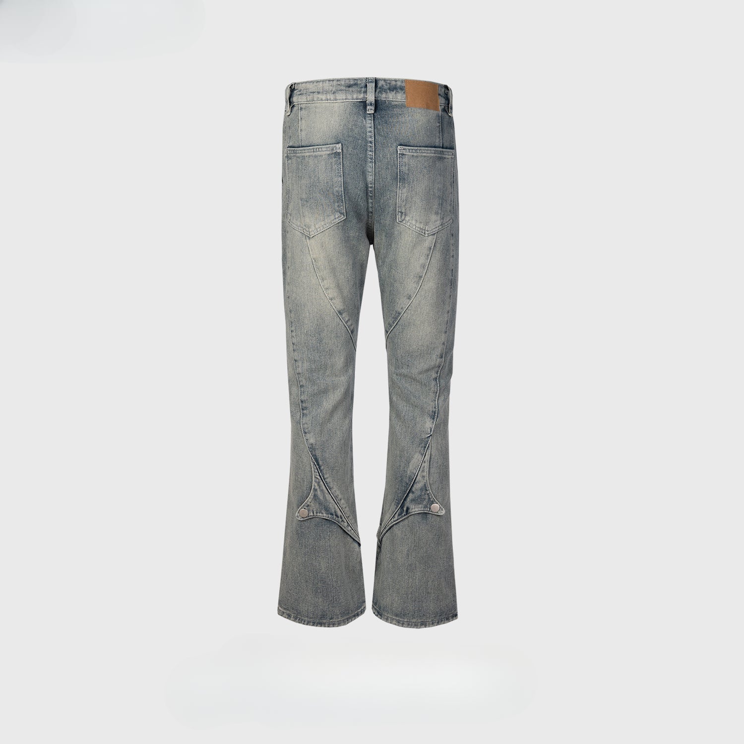 MIJKO Men's Vintage Pants MIJKO Washed Old Trousers Men's and Women's Splicing Button Blue Jeans