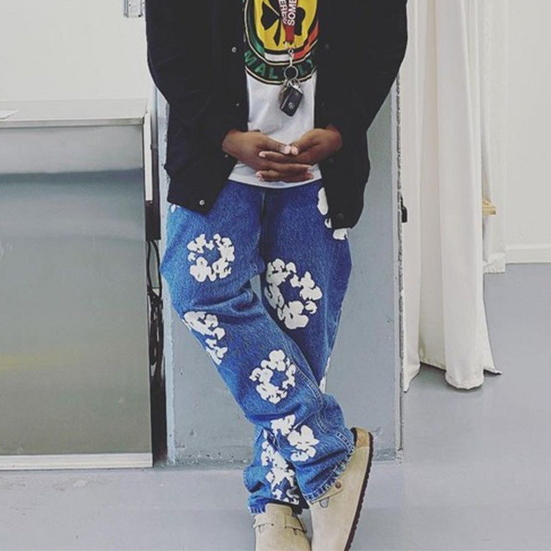 MIJKO Men's Vintage Pants MIJKO Men's and Women's Autumn and Winter VINTAGE Cotton Printed Straight Jeans