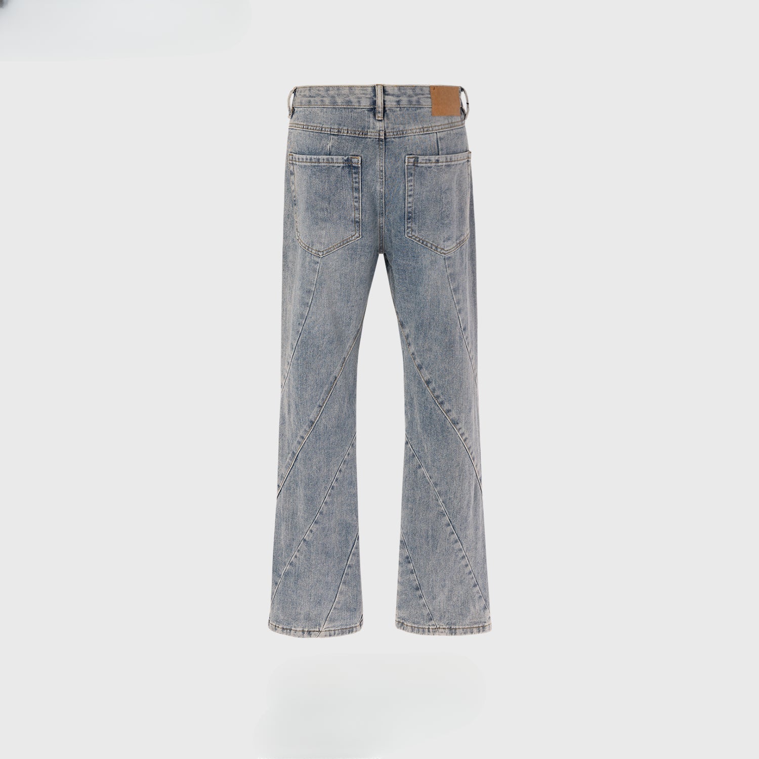 MIJKO Men Vintage Pants MIJKO washed old trousers spliced micro-pull jeans