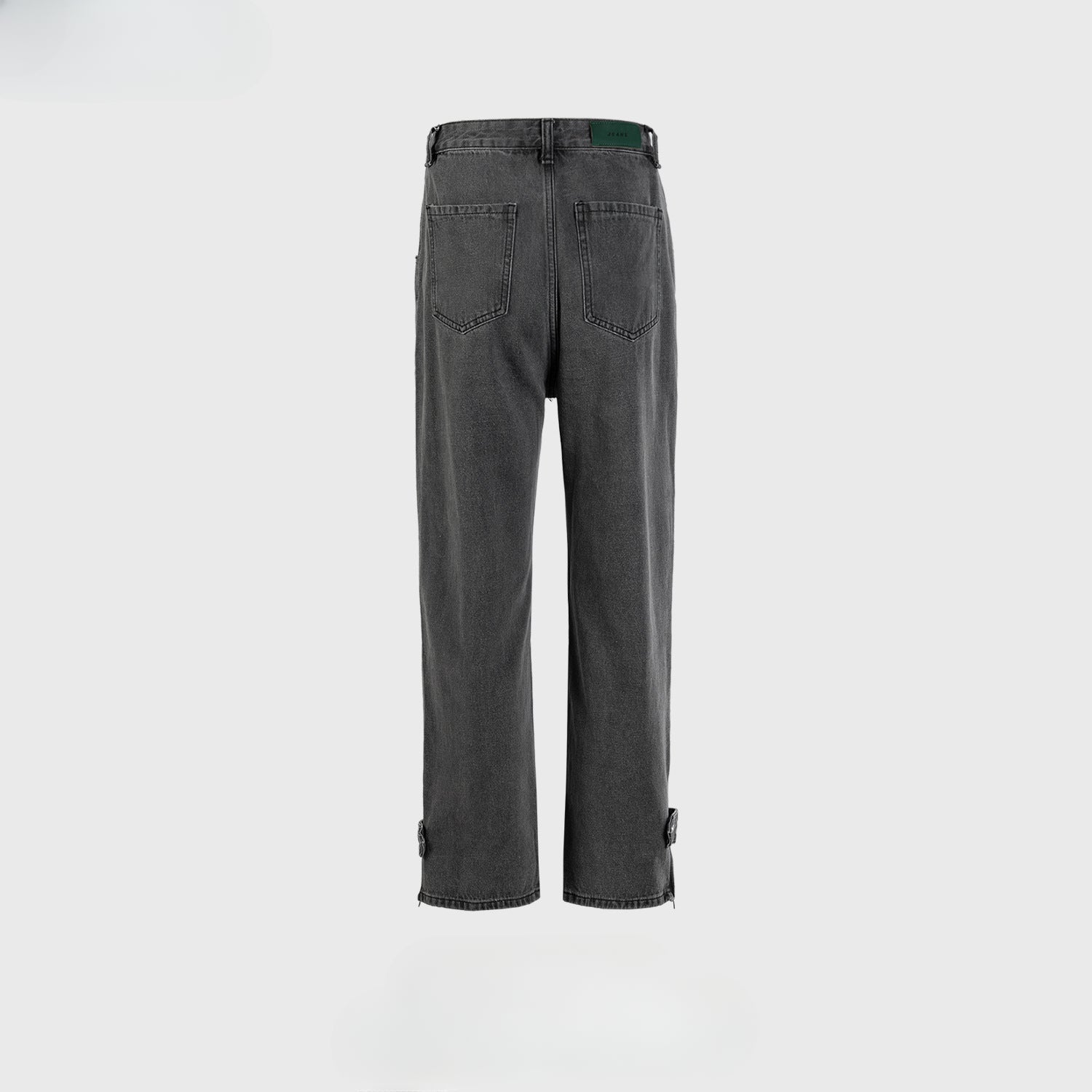 MIJKO Men's Vintage Pants MIJKO washed old trousers men's and women's wide trousers feet gray jeans