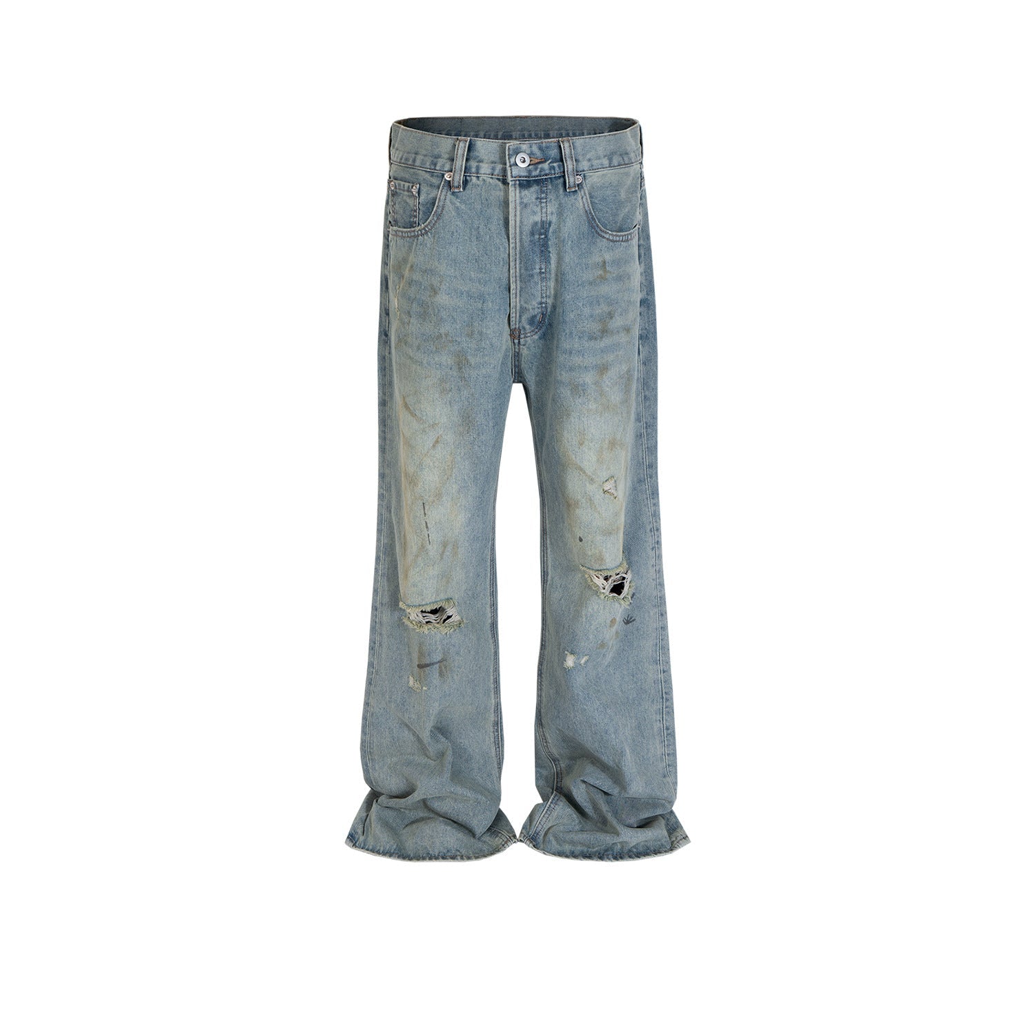 MIJKO Men Vintage Pants MIJKO Washing Water Old Ripped Blue Jeans