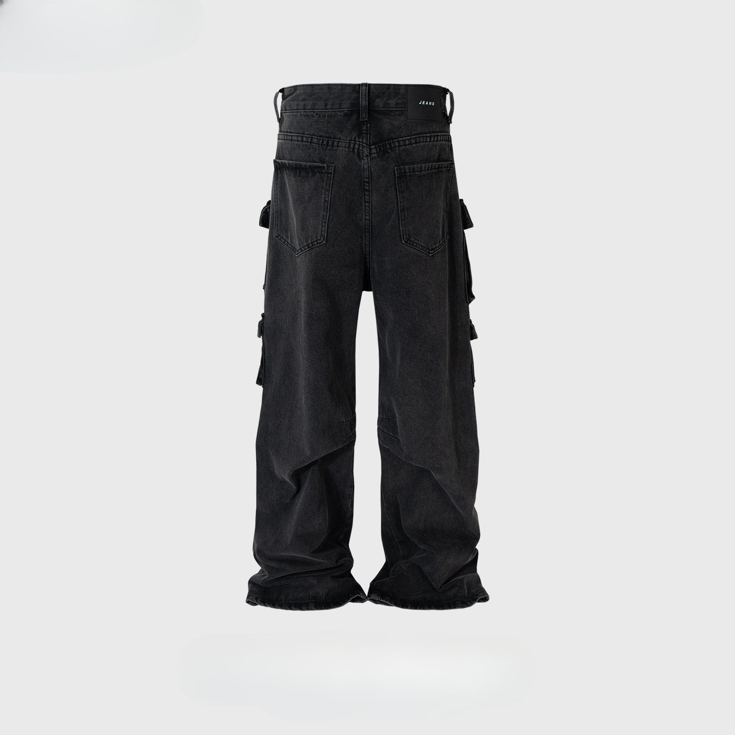 MIJKO Mens Vintage Pants MIJKO Tooling Wash High Street Wide Feet Black Jeans