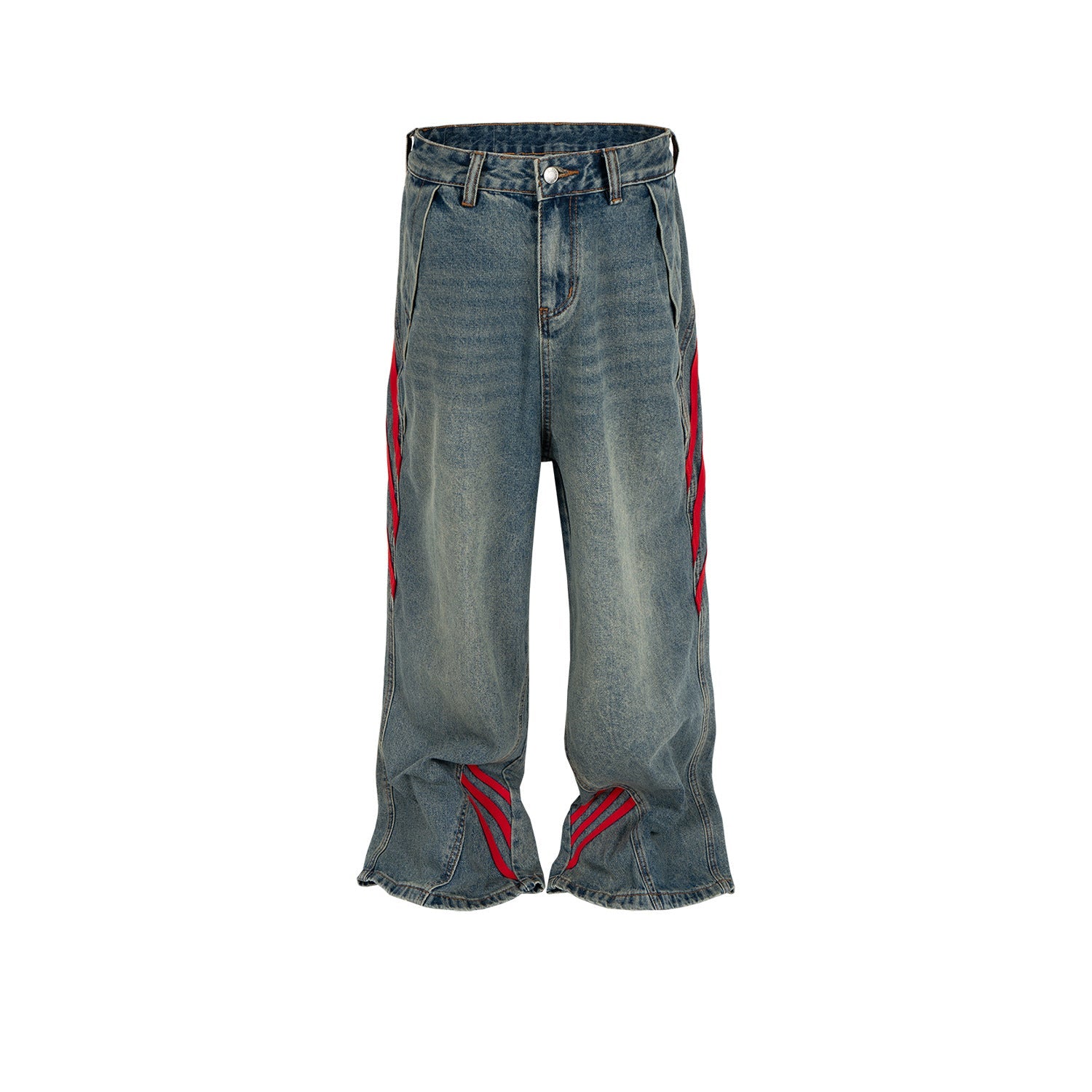MIJKO Men's Vintage Pants MIJKO Jeans Splicing Men's and Women's Button Pants Long Pants