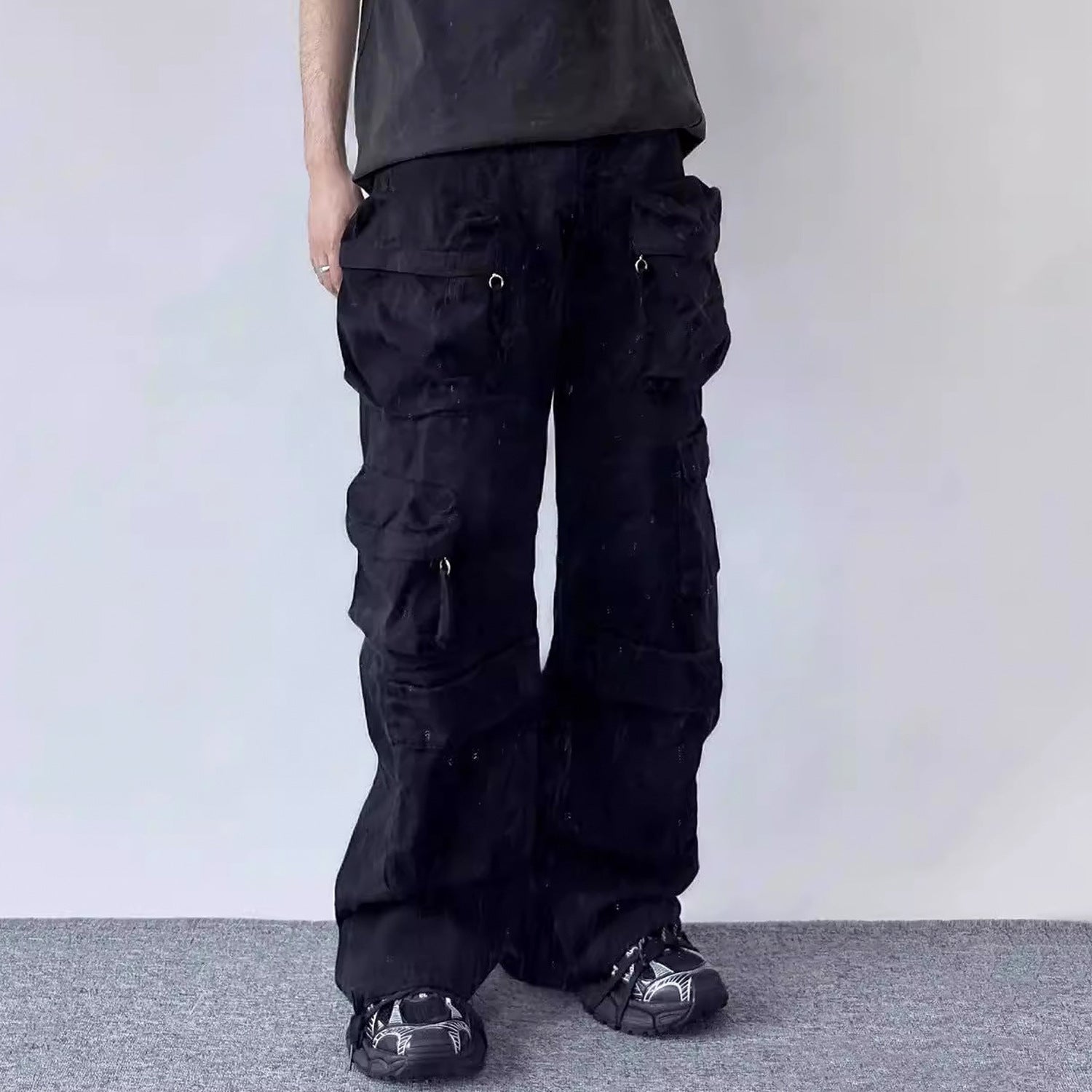 MIJKO Men Vintage Pants MIJKO Wide Leg Washed Overalls Trousers Casual Pants