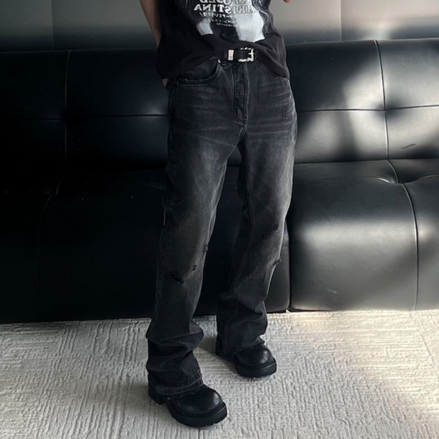 MIJKO Men's Vintage Pants MIJKO Men's Women's Old Pussy Beard Pants Long Pants Slight Pull Jeans