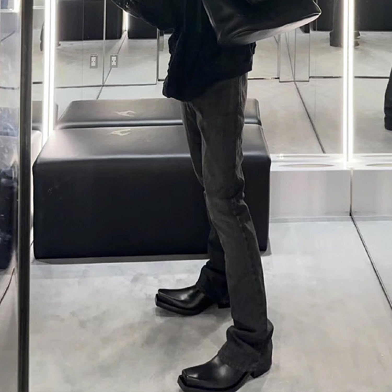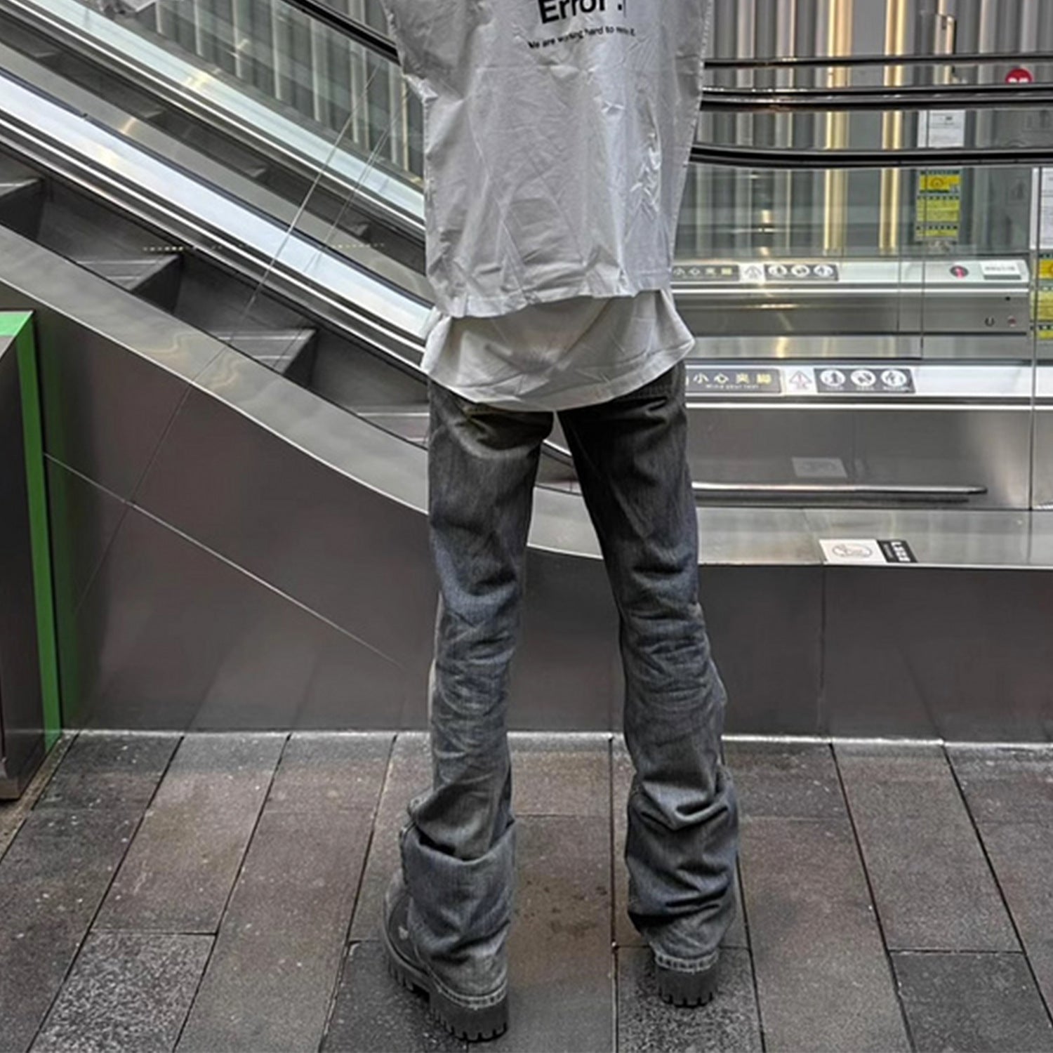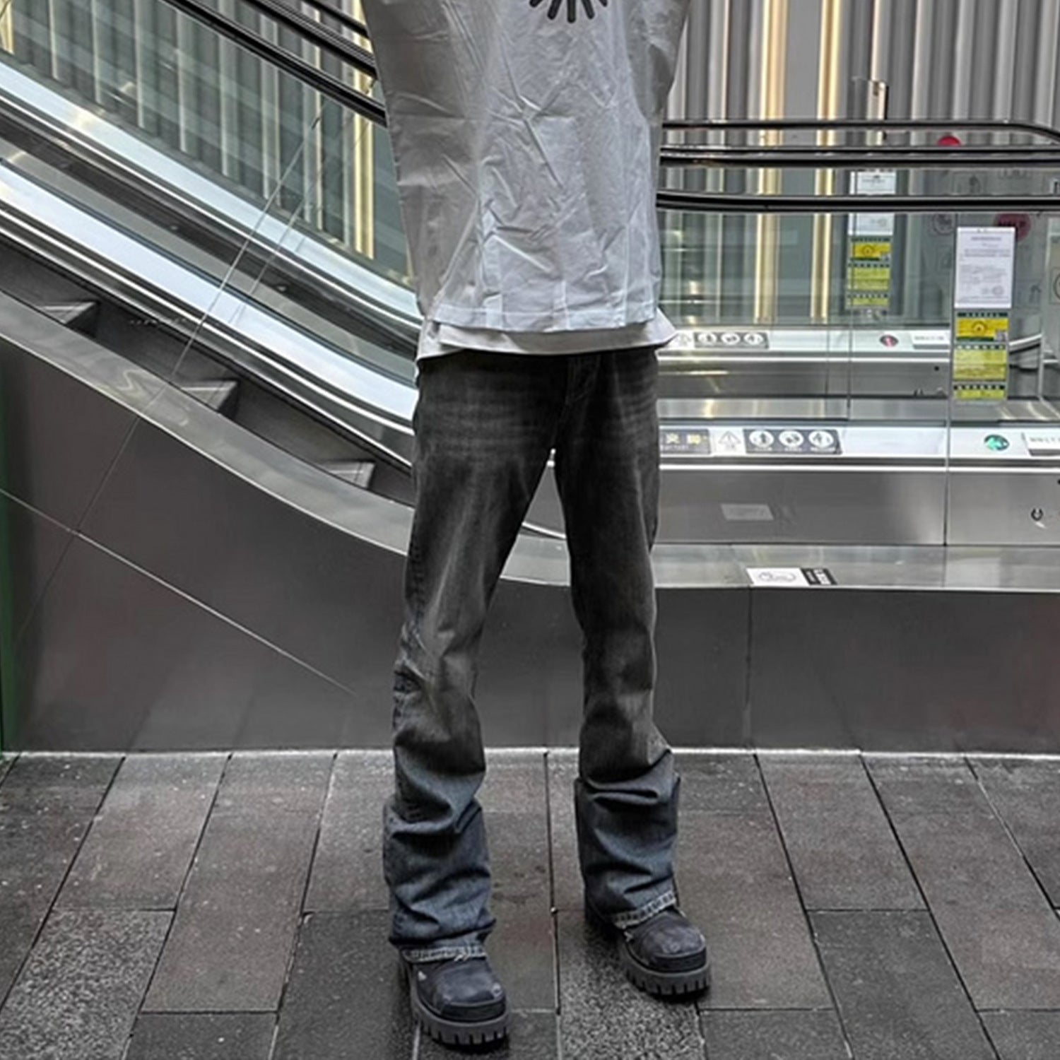 MIJKO Mens Vintage Pants MIJKO BootCut Old Wash Water Old Black Grey Jeans