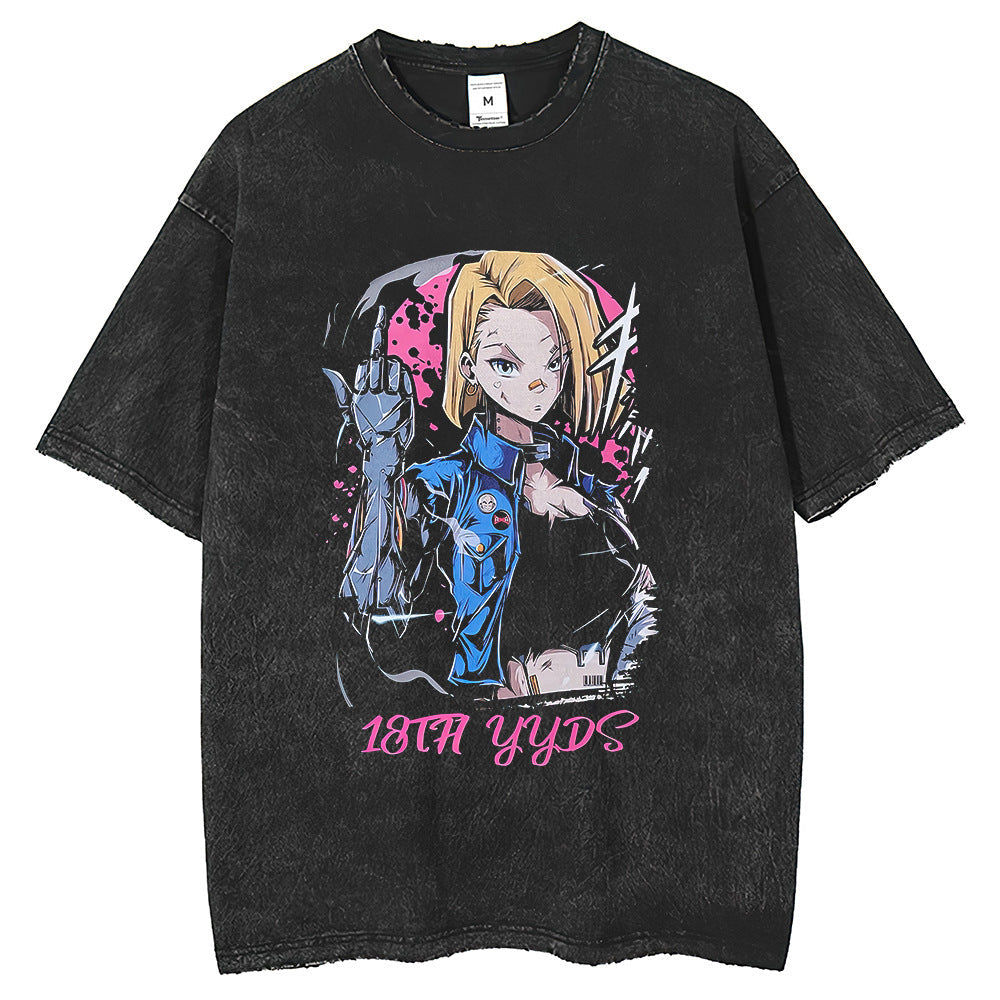 Mens T Shirts Washing Water Old Anime Dragon Ball 18t-Shirt Loose Retro Short Sleeves