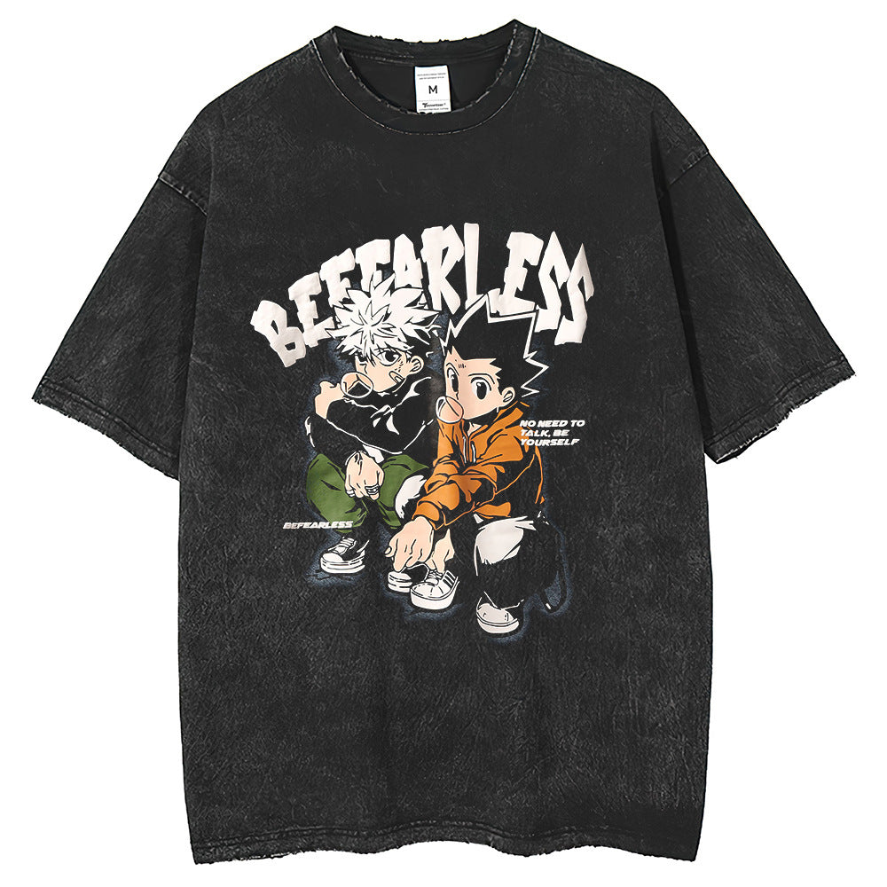 Men T Shirts Washing Water Old Full-time Lovers Printing Loose Vintage Casual