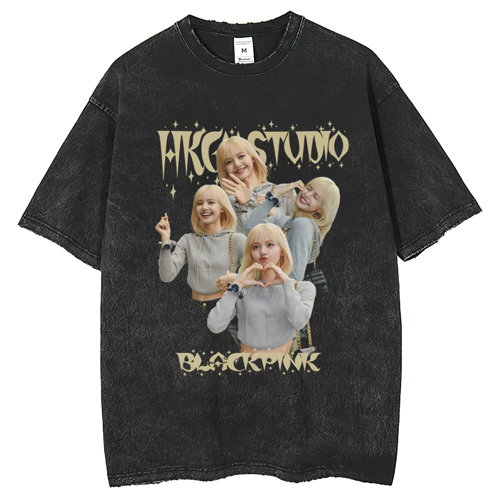 Mens T Shirts Printed Short Sleeve Lasa Washing T-Shirt Loose