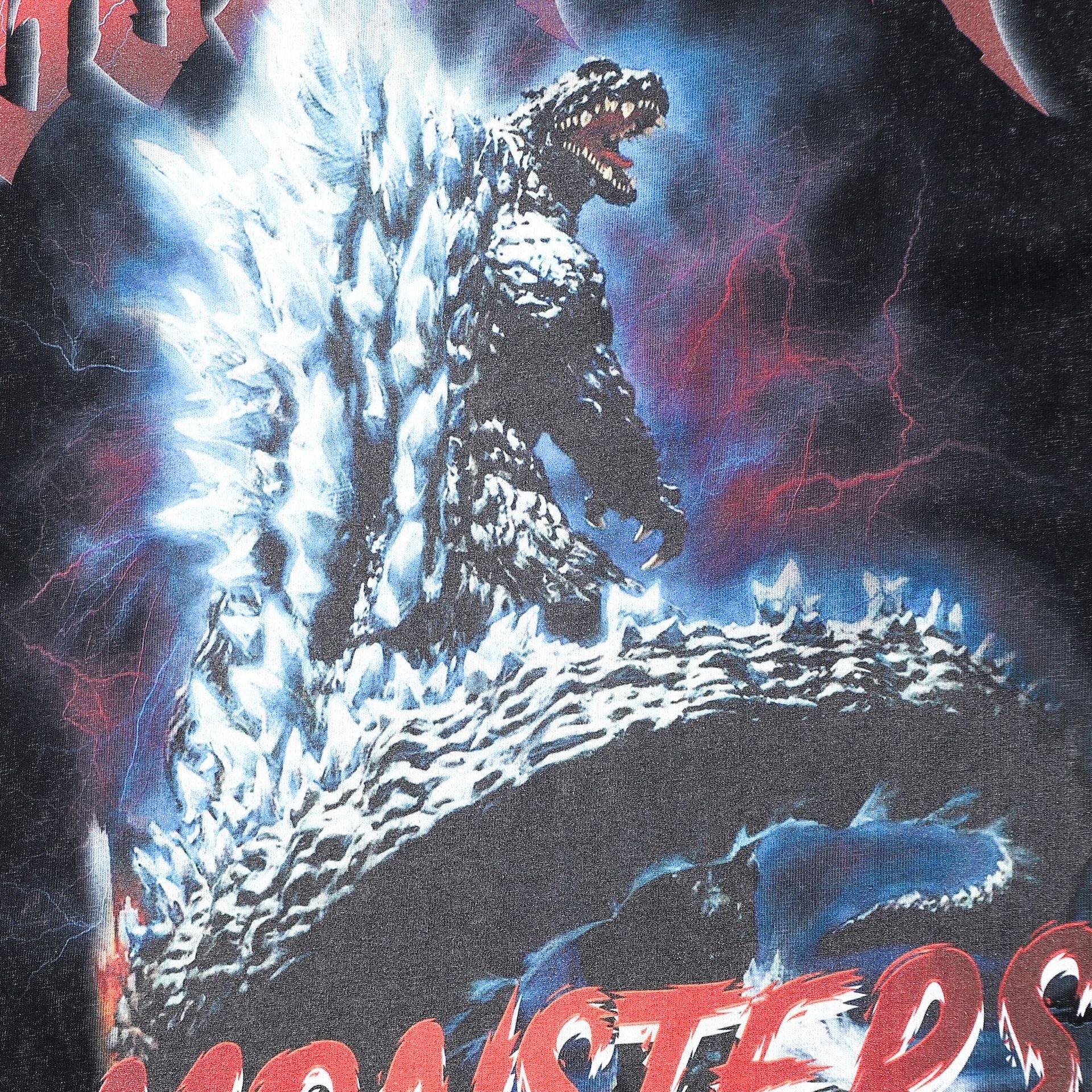 Mens T Shirts Monster Godzilla Print Cotton Short Sleeve T-Shirt Loose