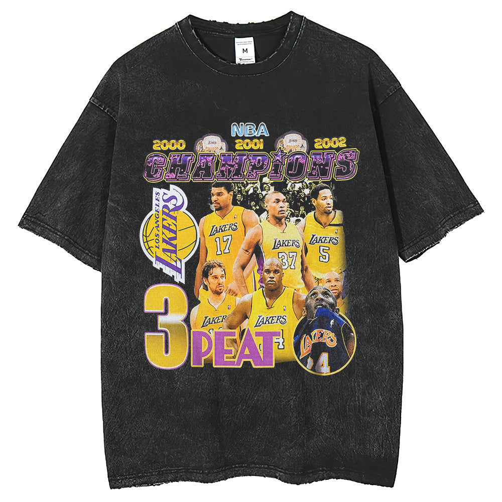 Men T Shirts Old Printed Short Sleeve T-Shirt Washing Water