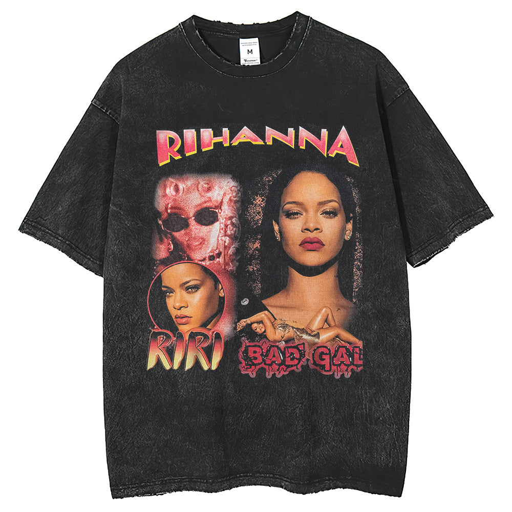 Mens T Shirts High Street Washing Water Old Loose T-Shirts ins