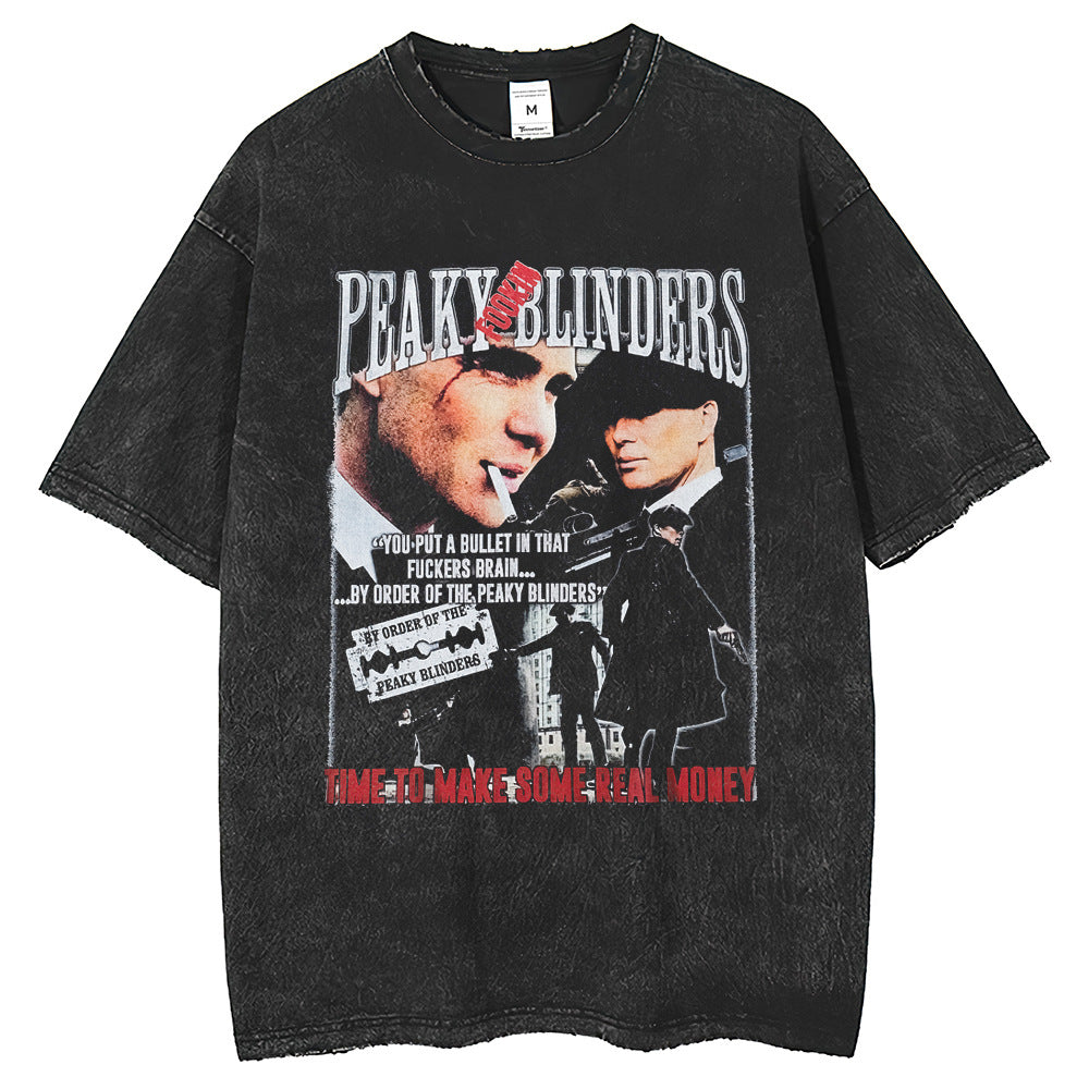 Mens T Shirts Printed Old Short Sleeve T-Shirt Loose Retro
