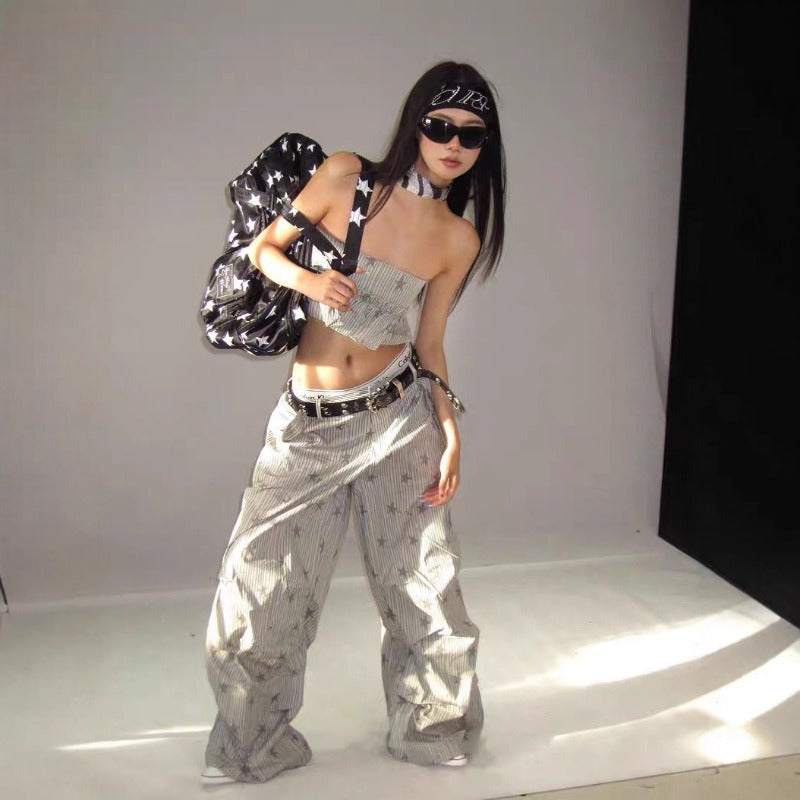 Women casual pants stripes star print